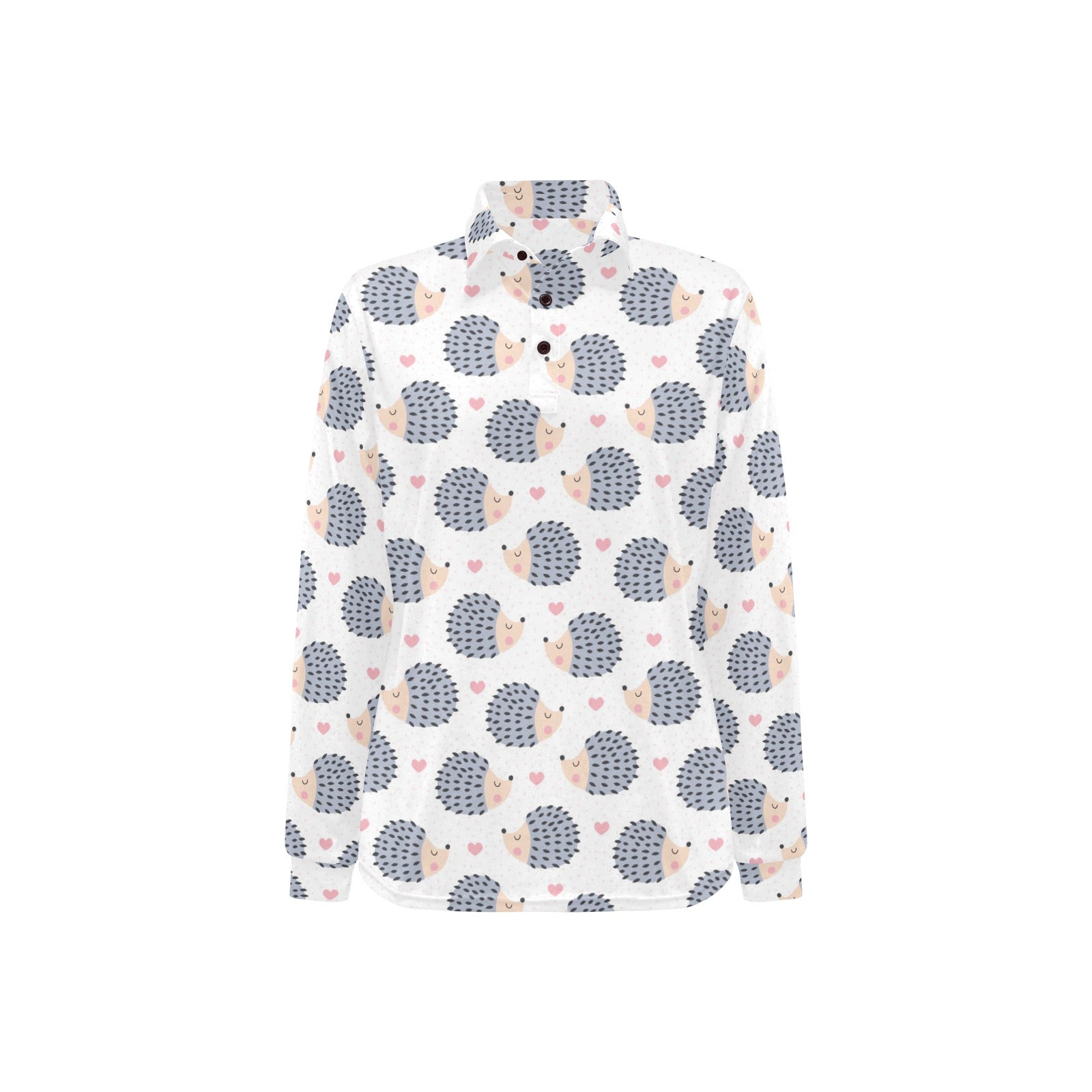 Hedgehog Pattern Print Design 04 Women's Long Sleeve Polo Shirt