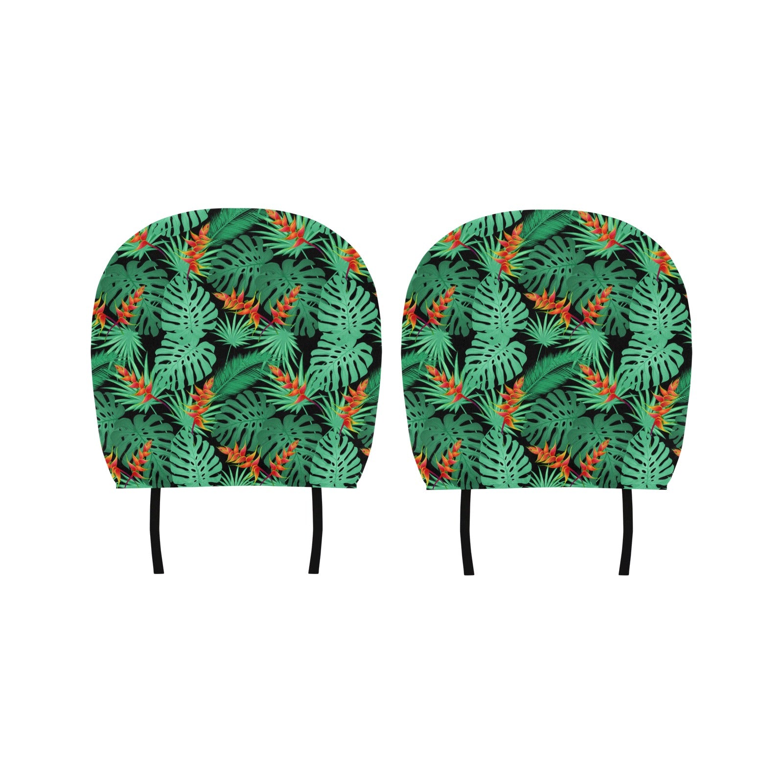 heliconia flower palm monstera leaves black backgr Car Headrest Cover