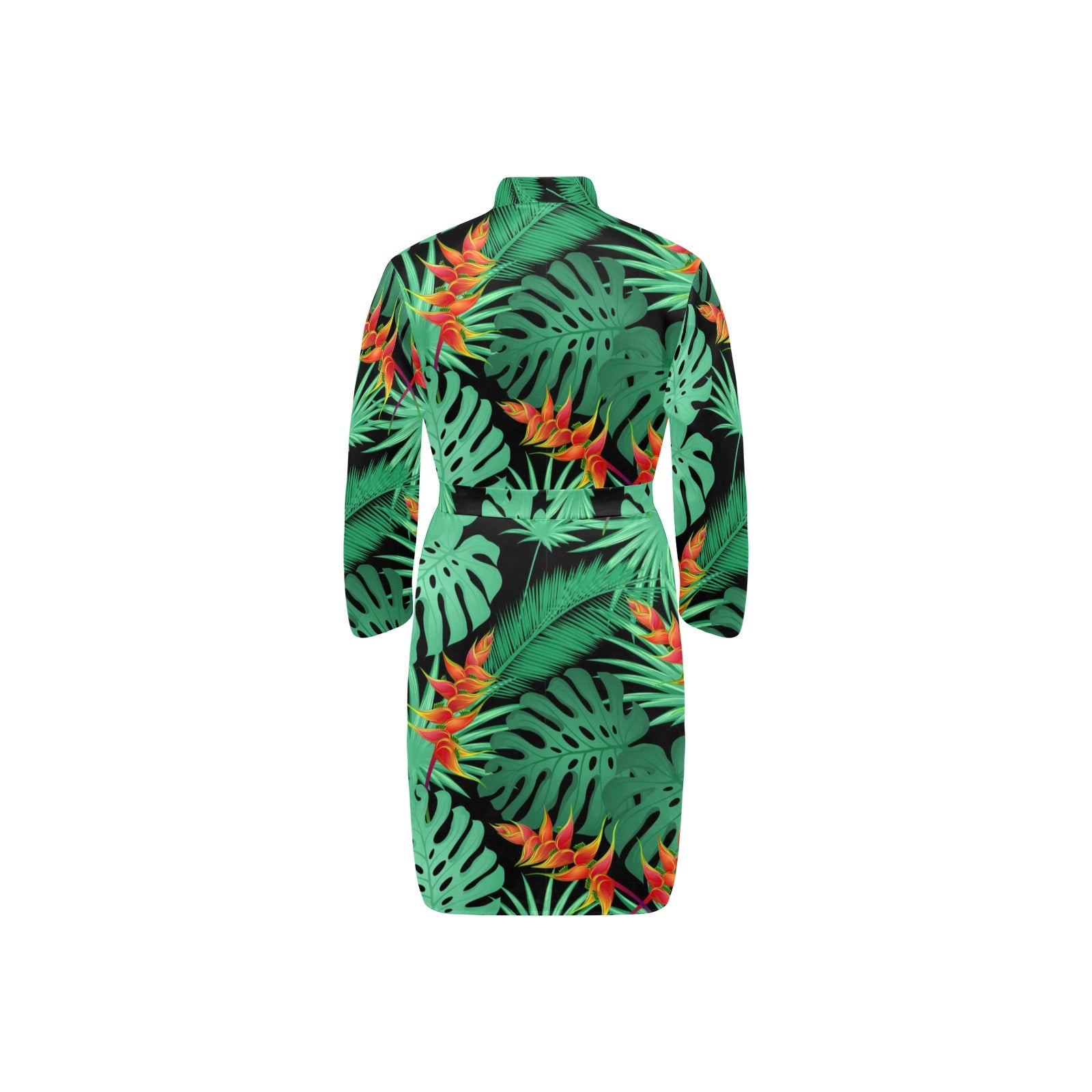 heliconia flower palm monstera leaves black backgr Men's Long Sleeve Belted Night Robe