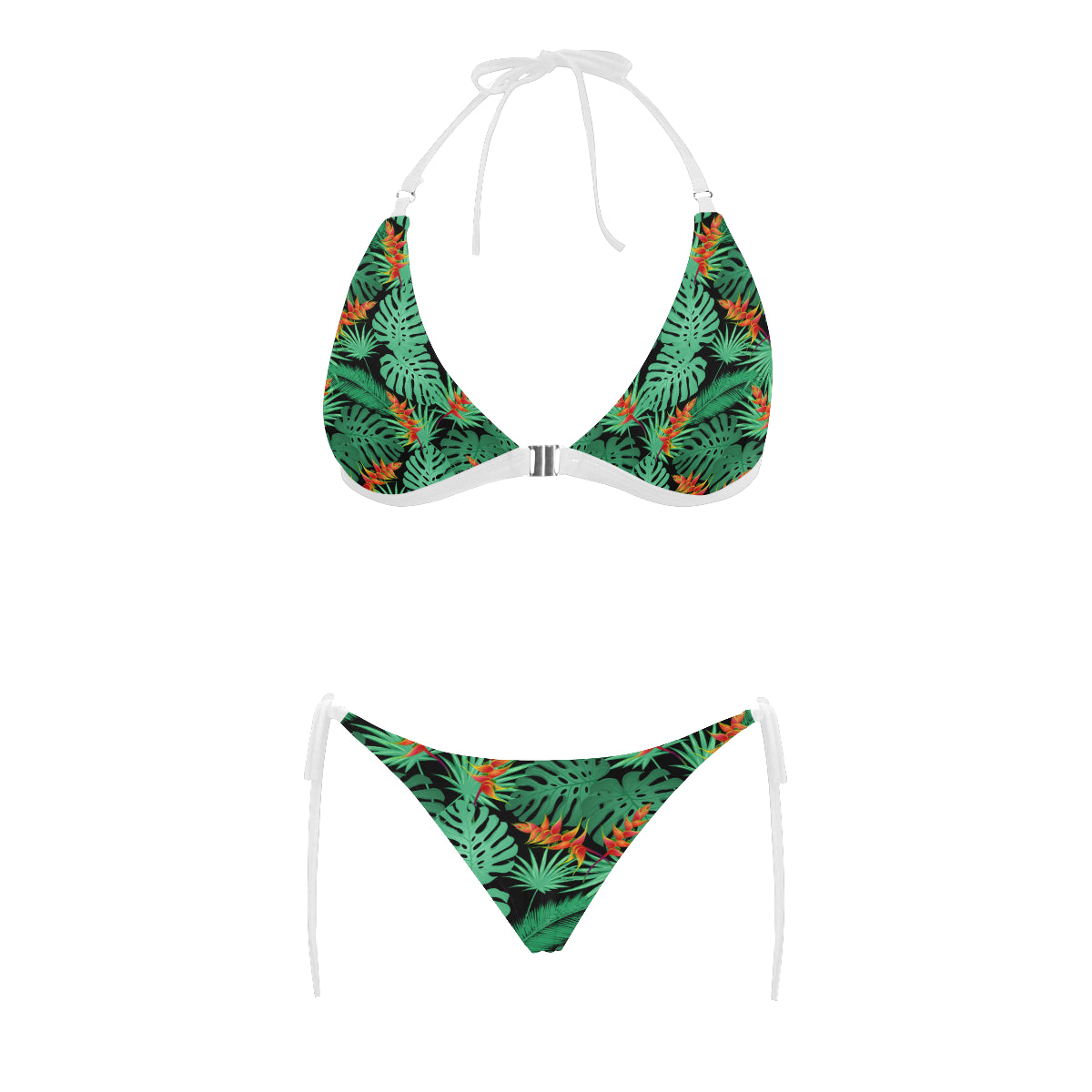 heliconia flower palm monstera leaves black backgr Sexy Bikinis Two-Piece Swimsuits are uniqued design and limited item. It made to order, hand printed, and sewn with love in our factory.