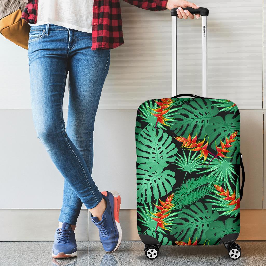 Heliconia Flower Palm Monstera Leaves Black Background Cabin Suitcases Luggages