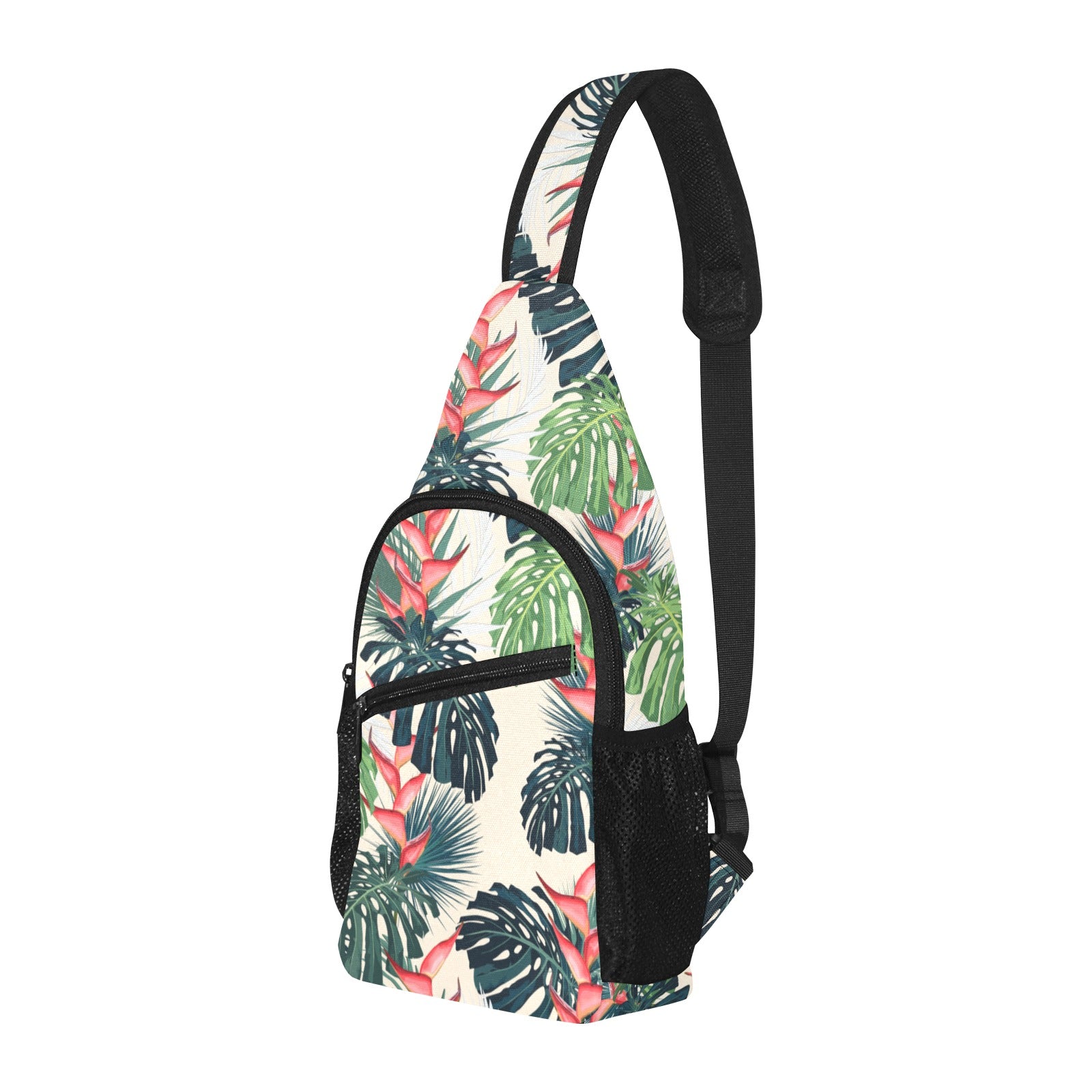 heliconia flowers, palm and monstera leaves All Over Print Chest Bag