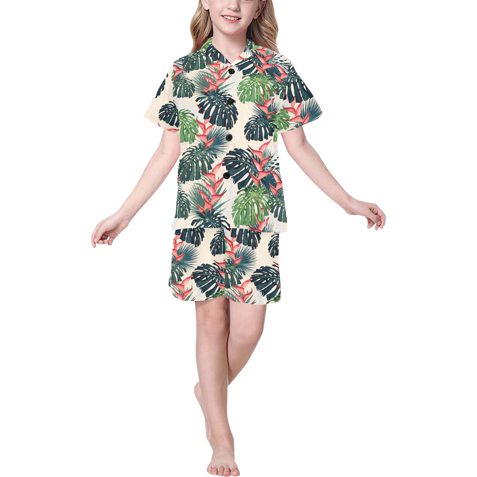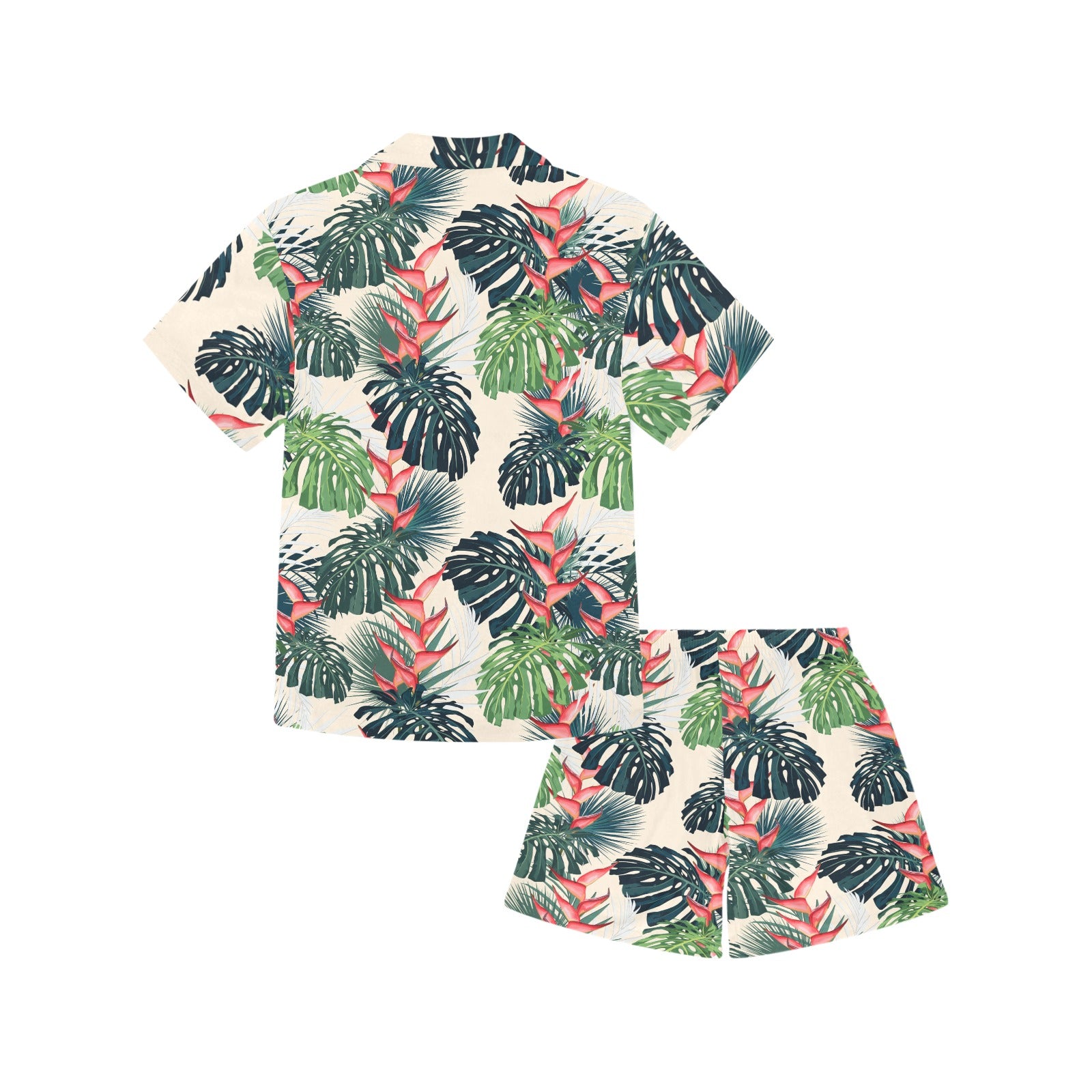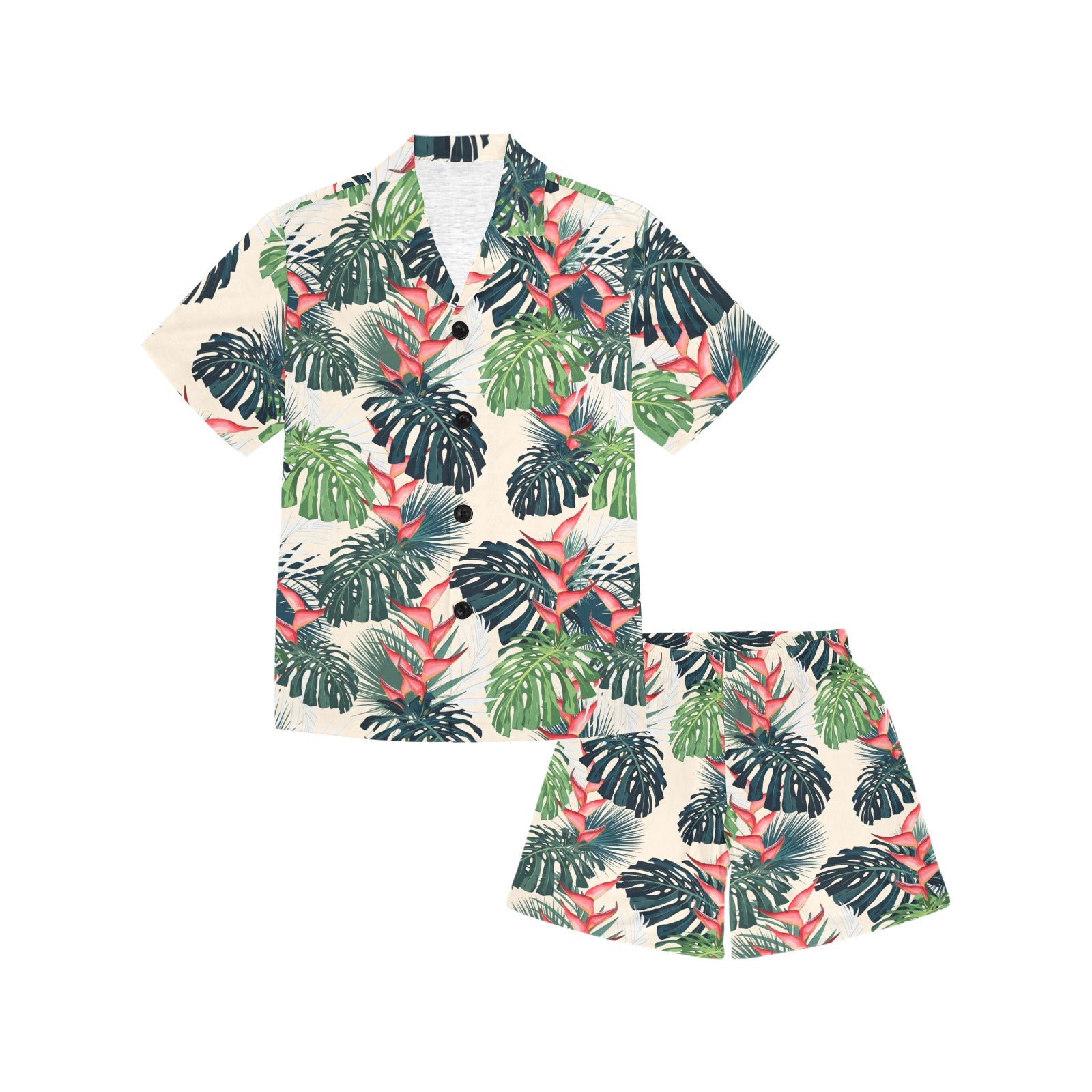 heliconia flowers, palm and monstera leaves Kids' Boys' Girls' V-Neck Short Pajama Set
