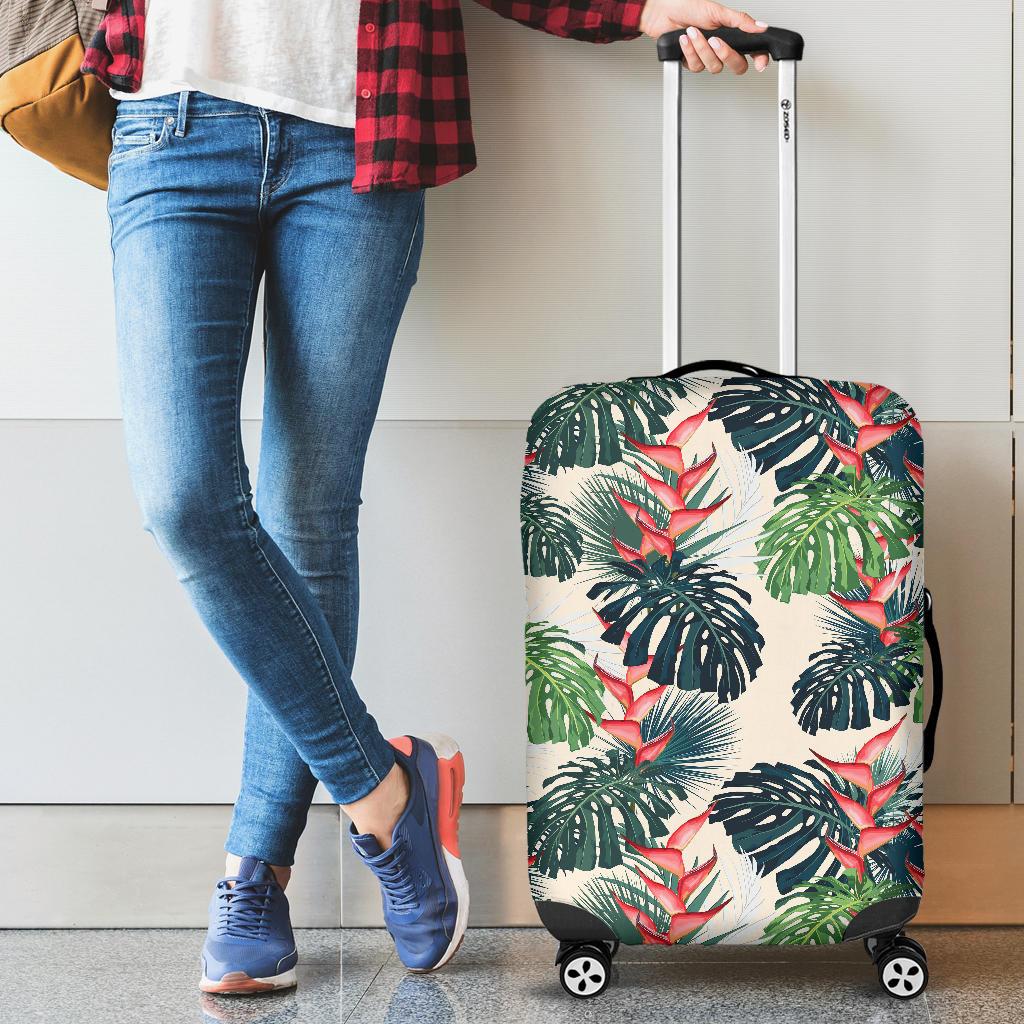 Heliconia Flowers, Palm And Monstera Leaves Cabin Suitcases Luggages