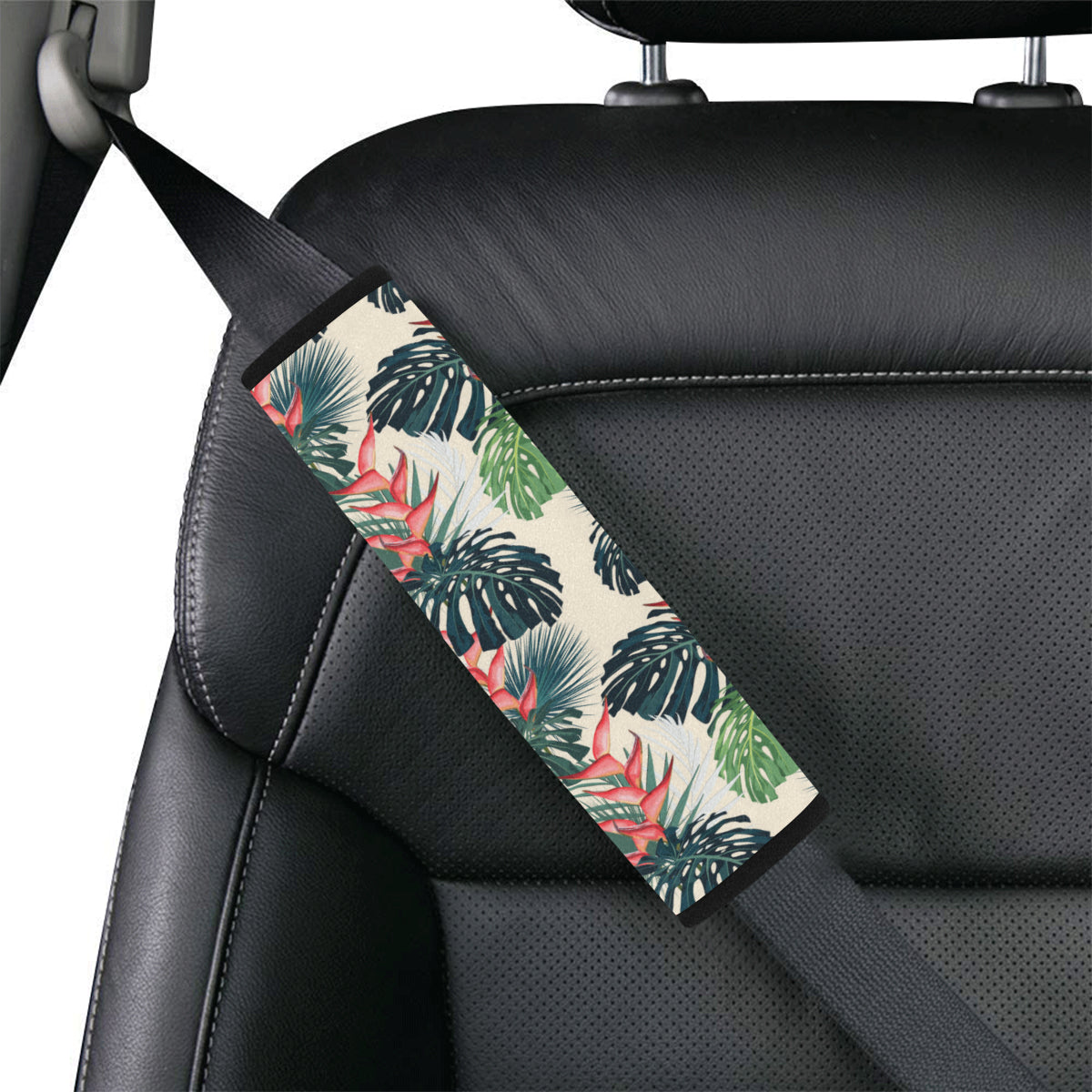 heliconia flowers, palm and monstera leaves Car Seat Belt Cover is a uniqued design and limited item. It made to order, hand printed, and sewn with love in our factory.