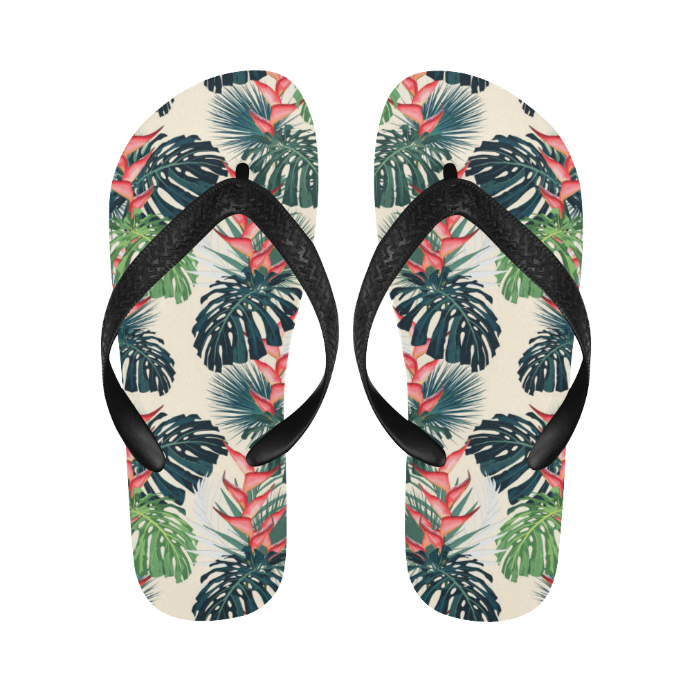 heliconia flowers, palm and monstera leaves Unisex Flip Flops