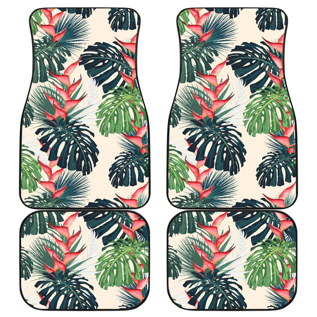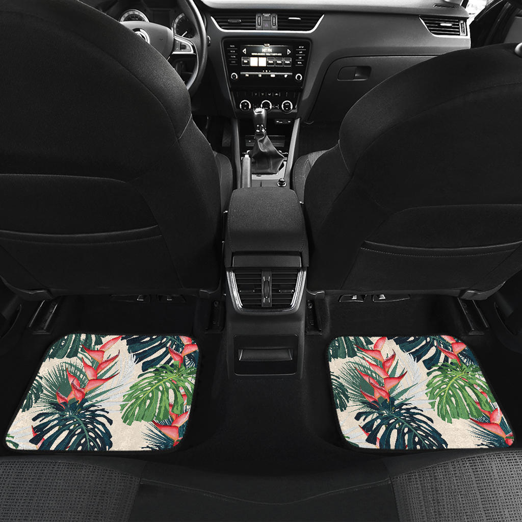 Heliconia Flowers, Palm And Monstera Leaves Front And Back Car Mats