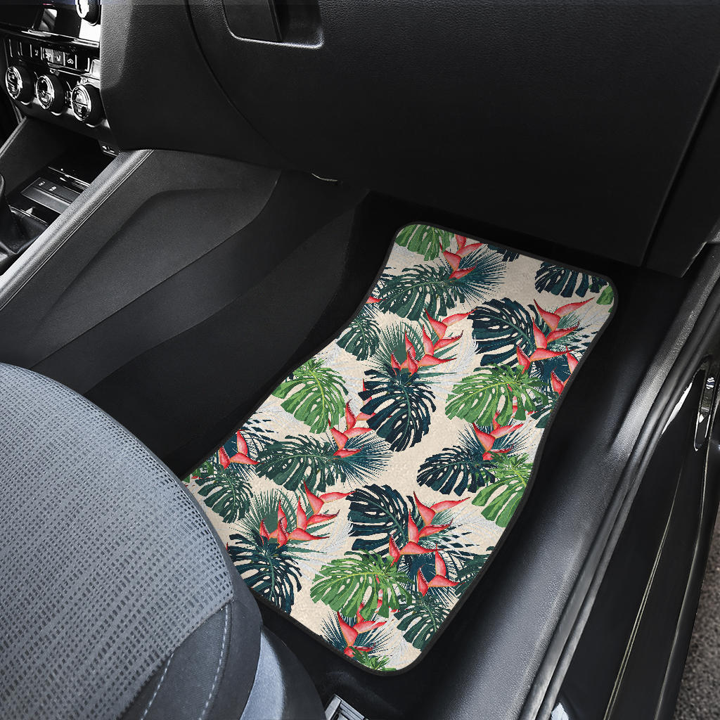 Heliconia Flowers, Palm And Monstera Leaves Front Car Mats