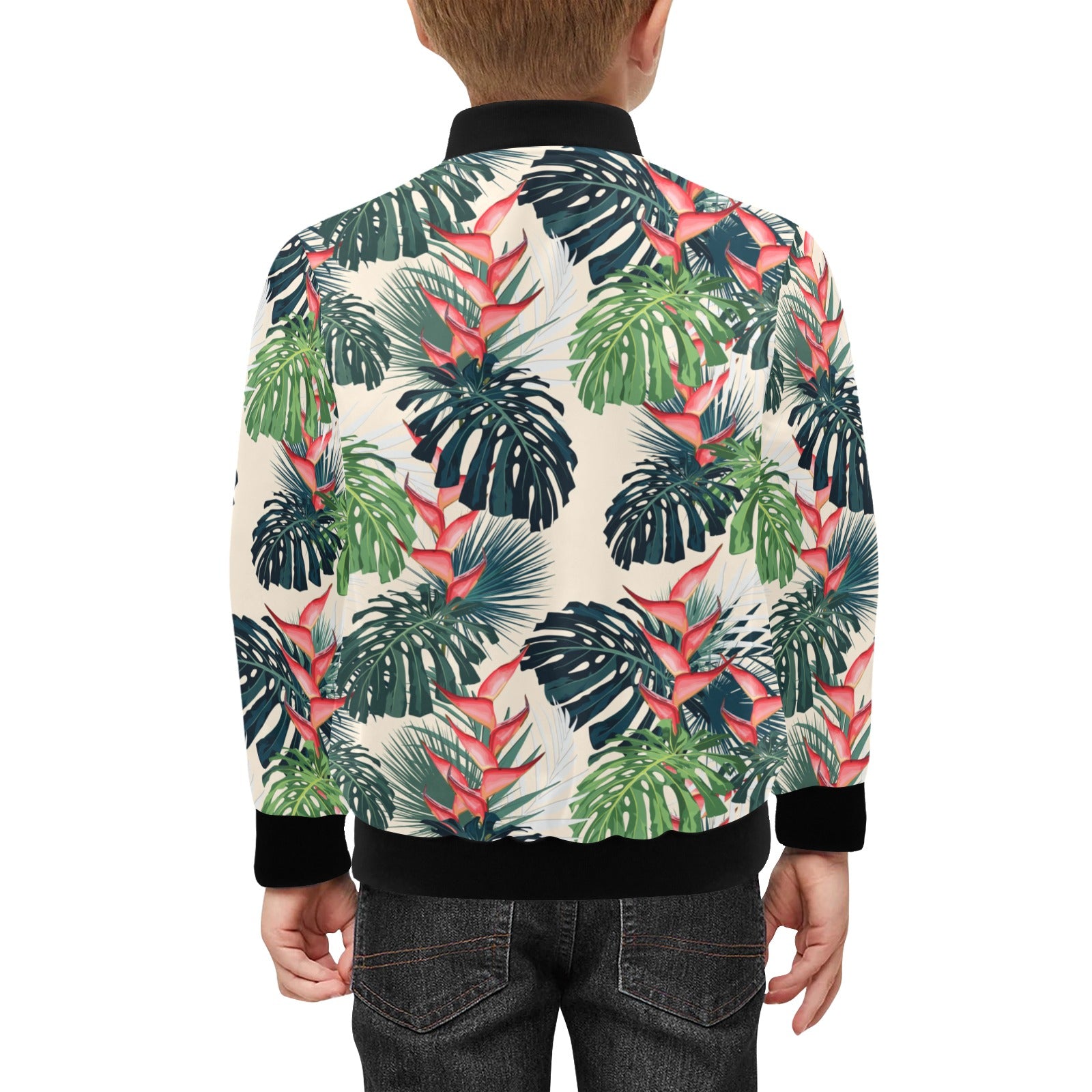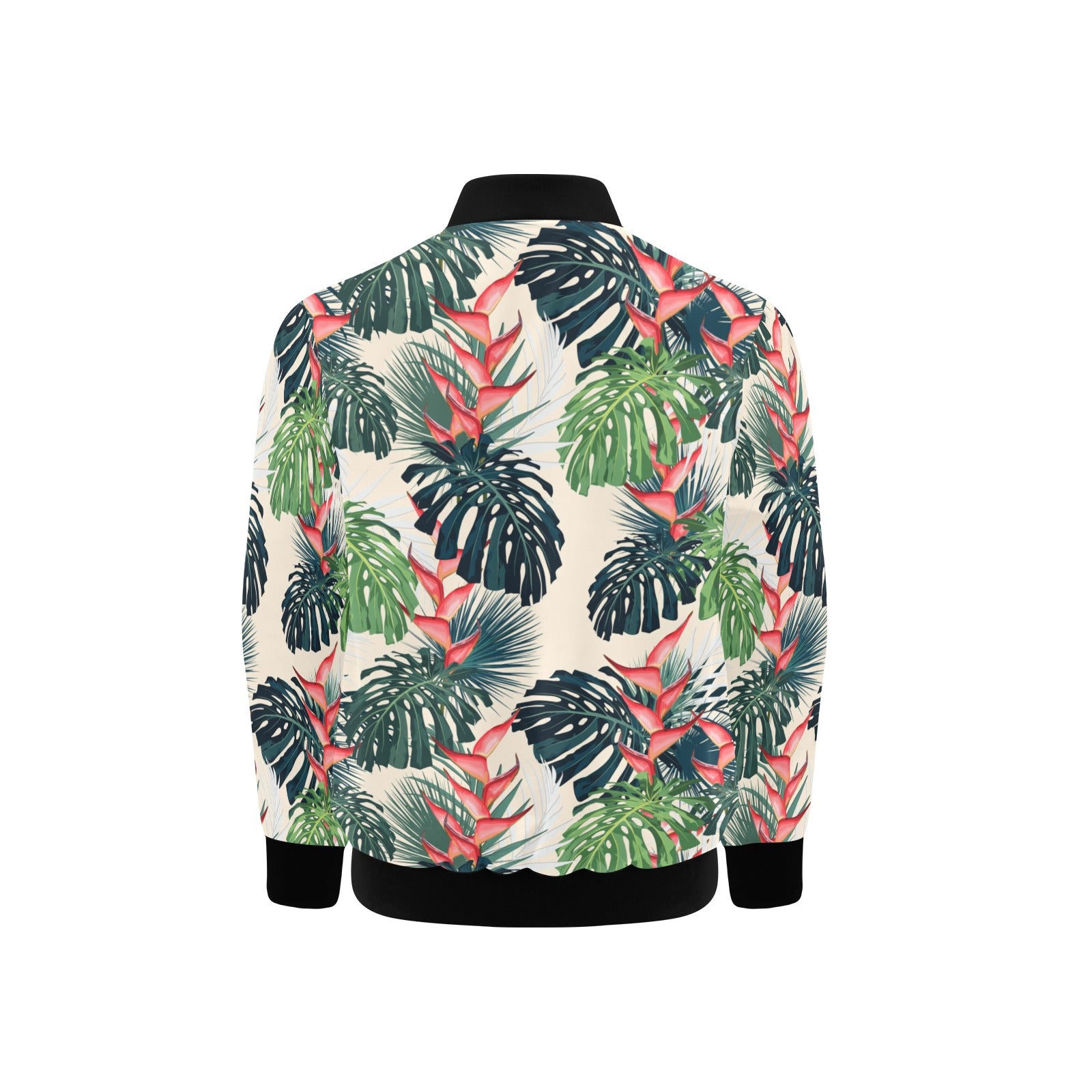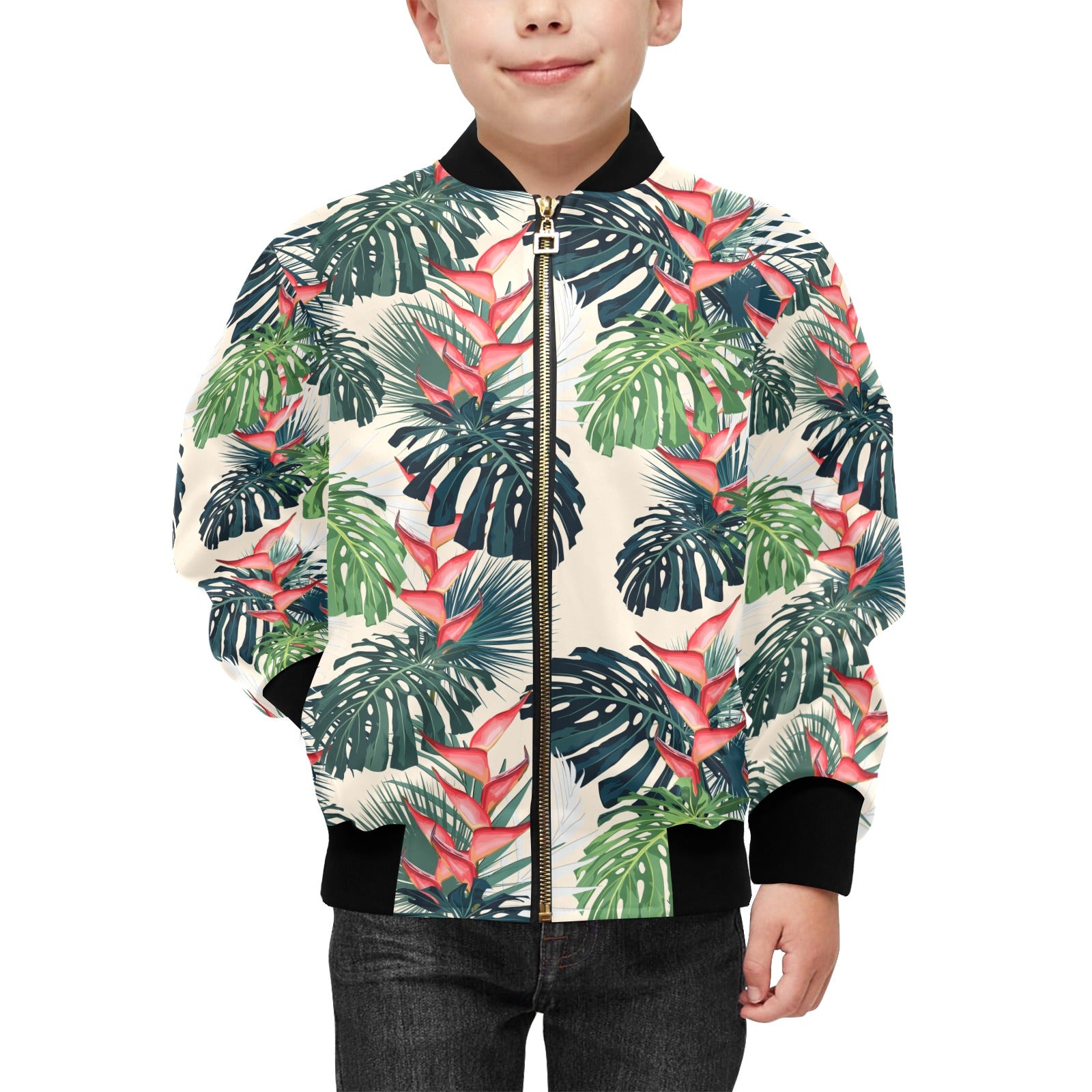 heliconia flowers, palm and monstera leaves Kids' Boys' Girls' Bomber Jacket