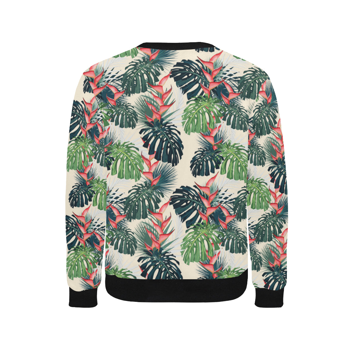 heliconia flowers, palm and monstera leaves Men's Crew Neck Sweatshirt