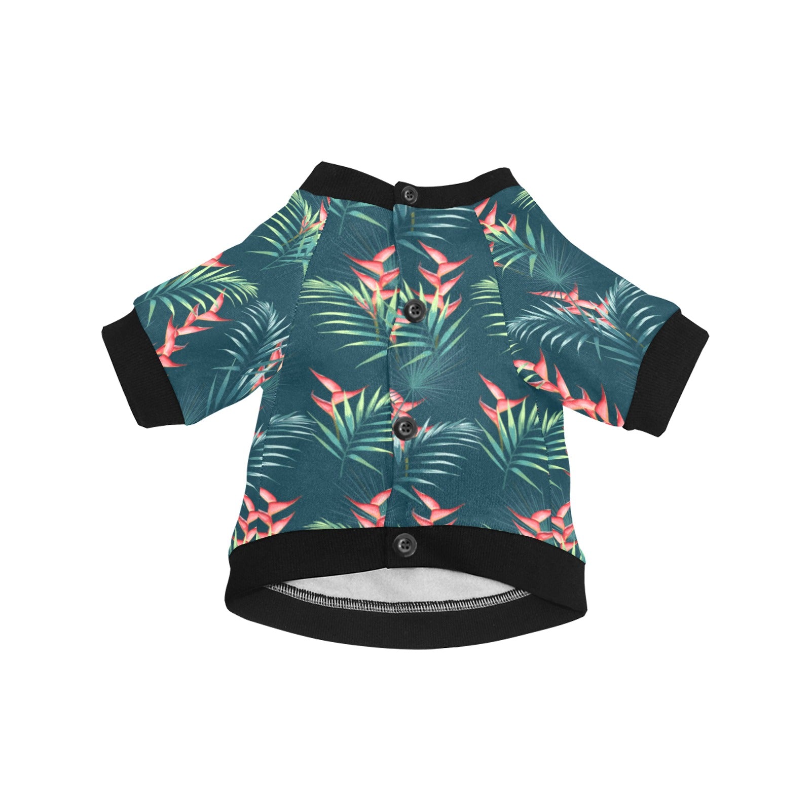 heliconia flowers, palm and monstera leaves on bla All Over Print Pet Dog Round Neck Fuzzy Shirt