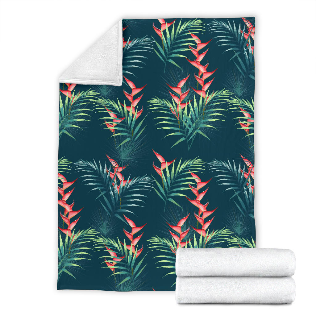 heliconia flowers, palm and monstera leaves on black background pattern Premium Blanket is a uniqued design and limited item. It made to order, hand printed, and sewn with love in our factory.
