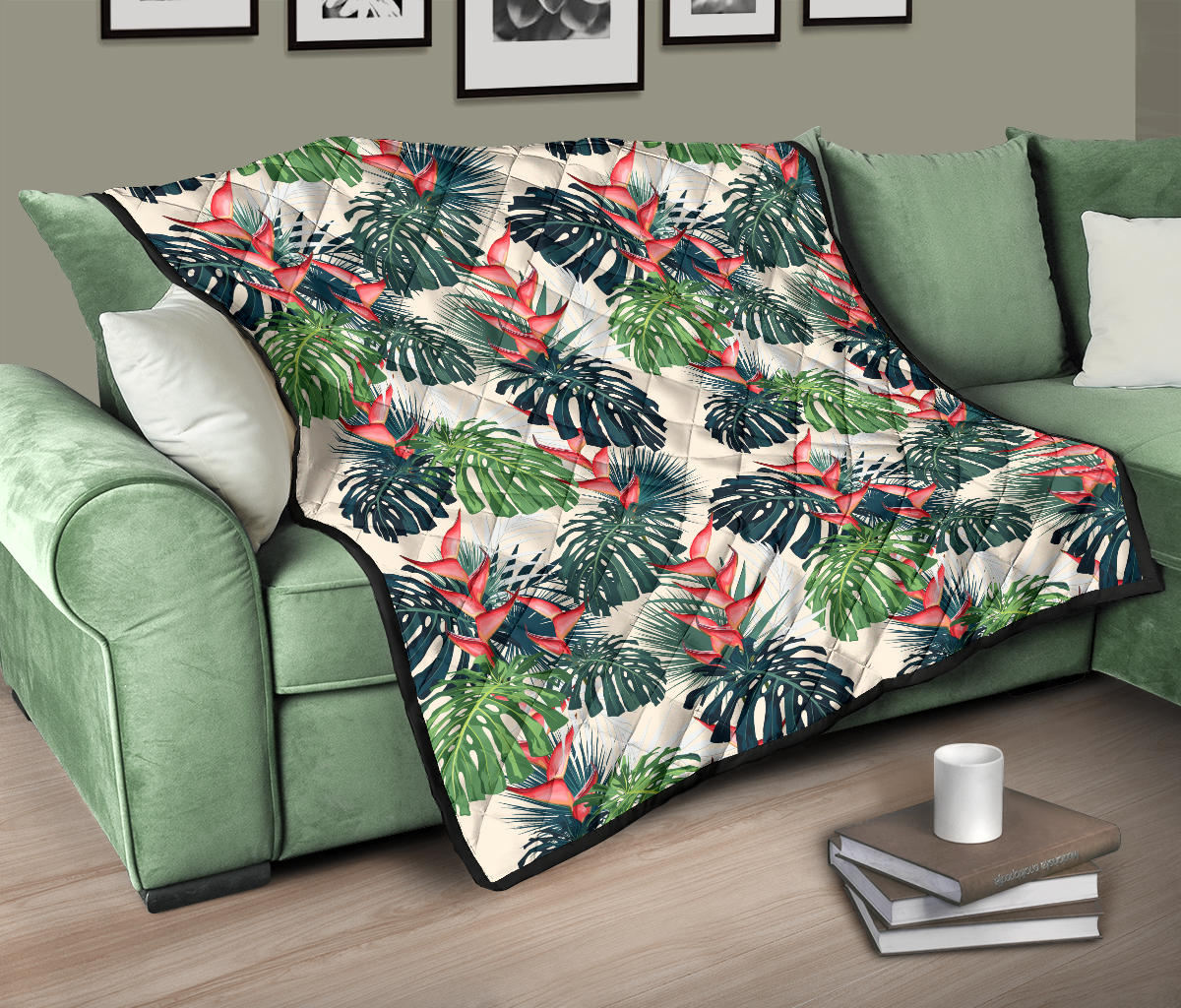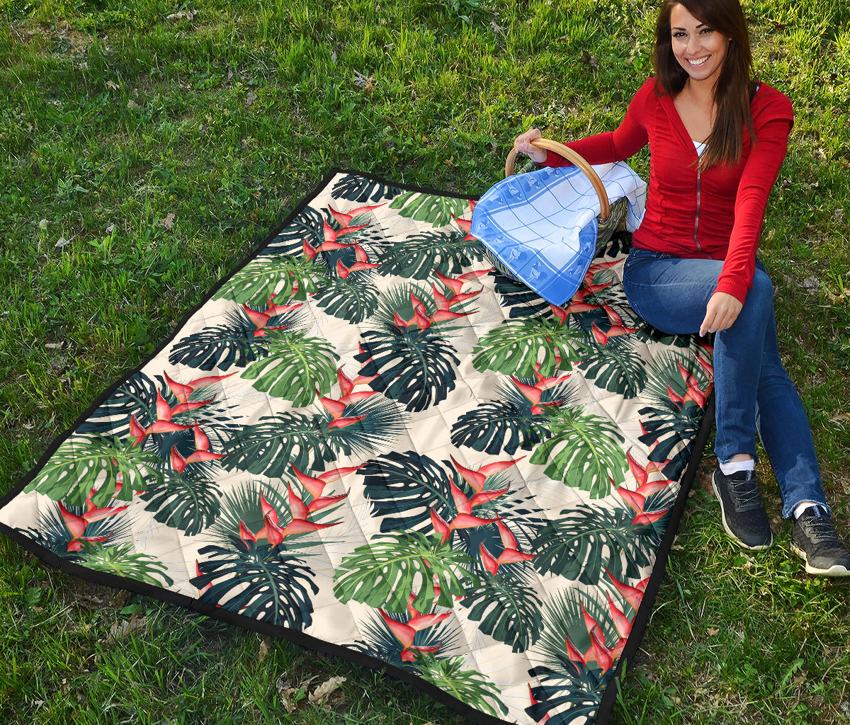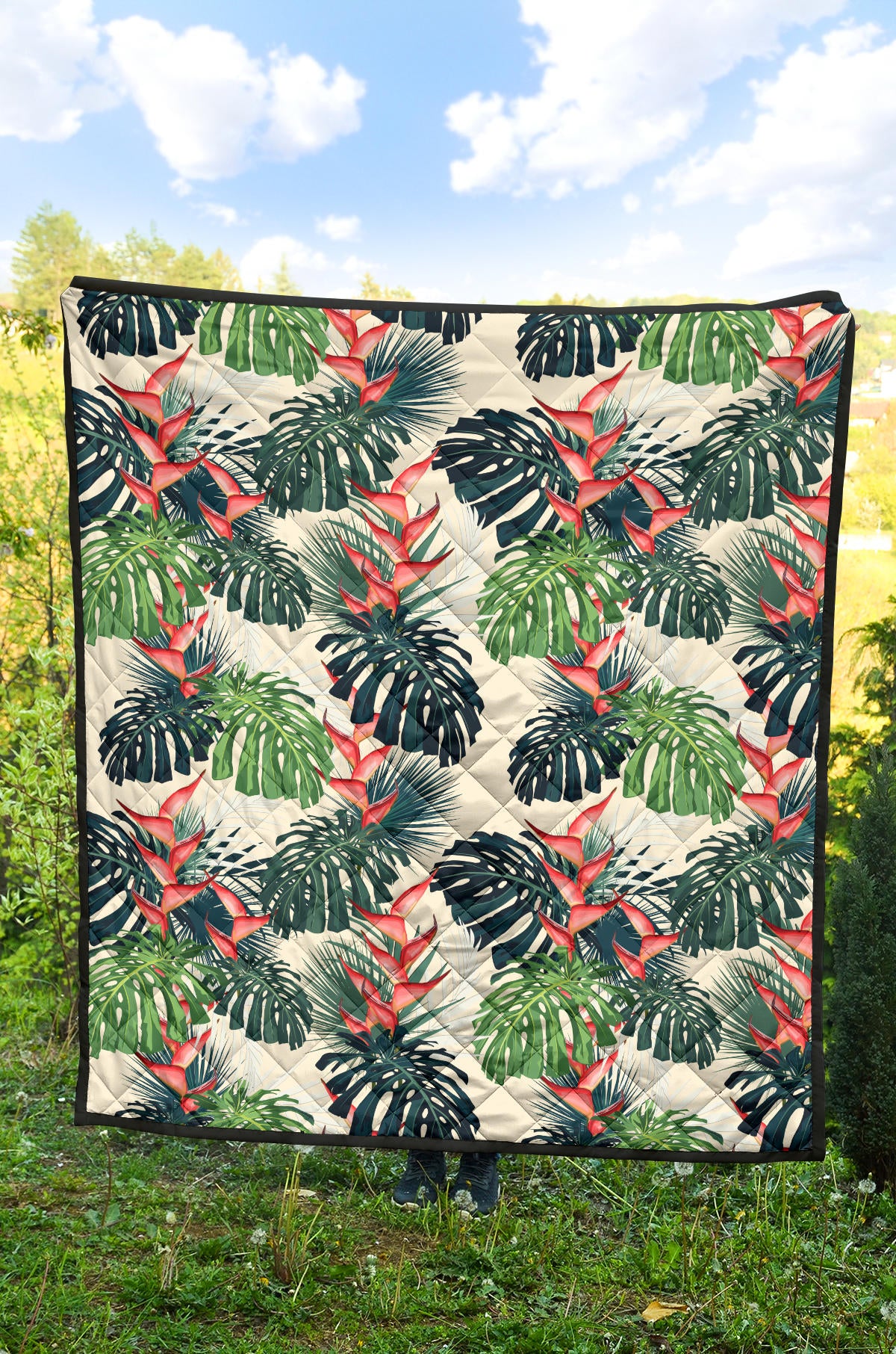 Heliconia Flowers, Palm And Monstera Leaves Premium Quilt is a uniqued design and limited item. It made to order, hand printed, and sewn with love in our factory.