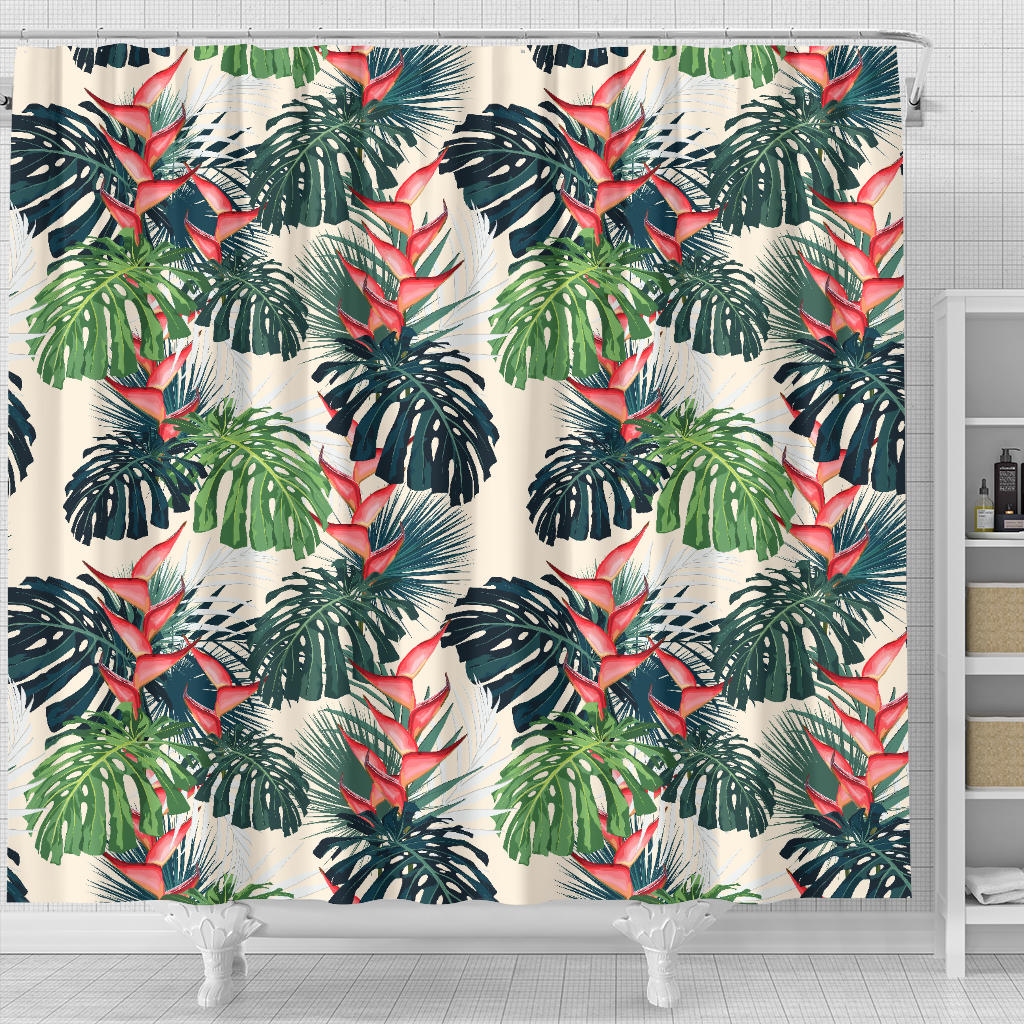Heliconia Flowers, Palm And Monstera Leaves Shower Curtain Fulfilled In US