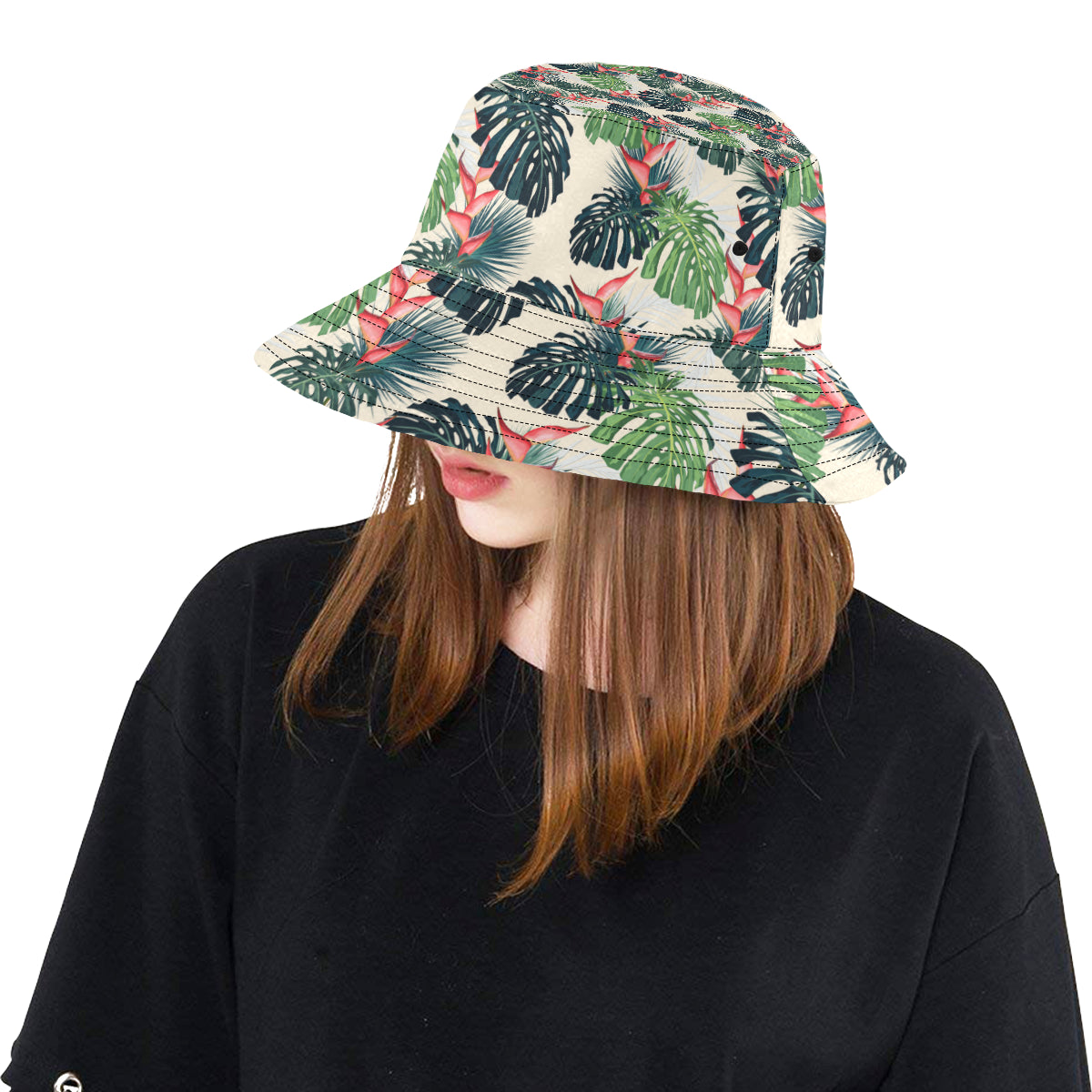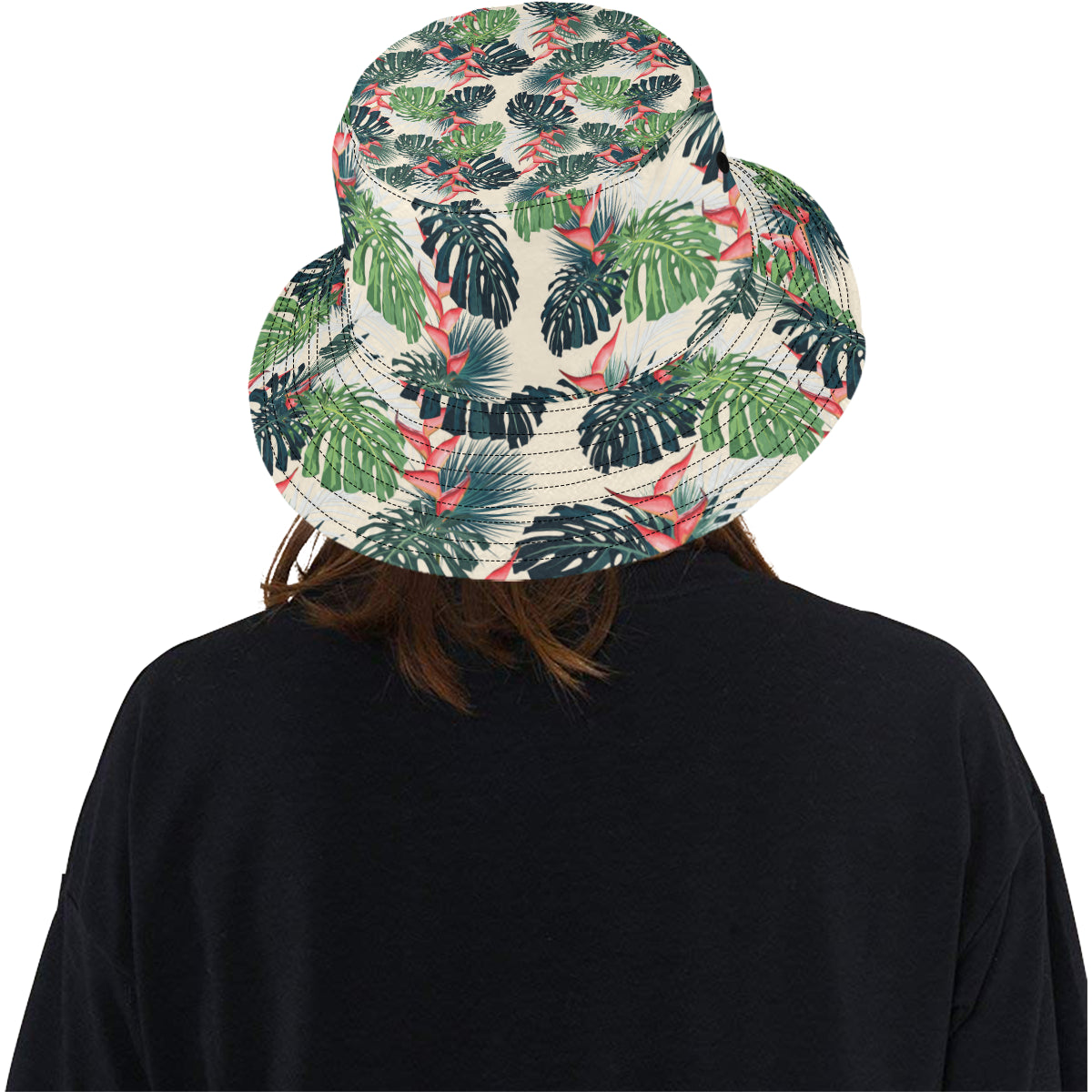 heliconia flowers, palm and monstera leaves Unisex Bucket Hat is a uniqued design and limited item. It made to order, hand printed, and sewn with love in our factory.