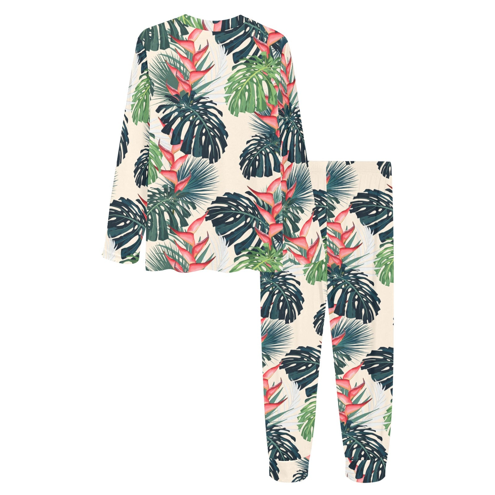 heliconia flowers, palm and monstera leaves Women's All Over Print Pajama Set