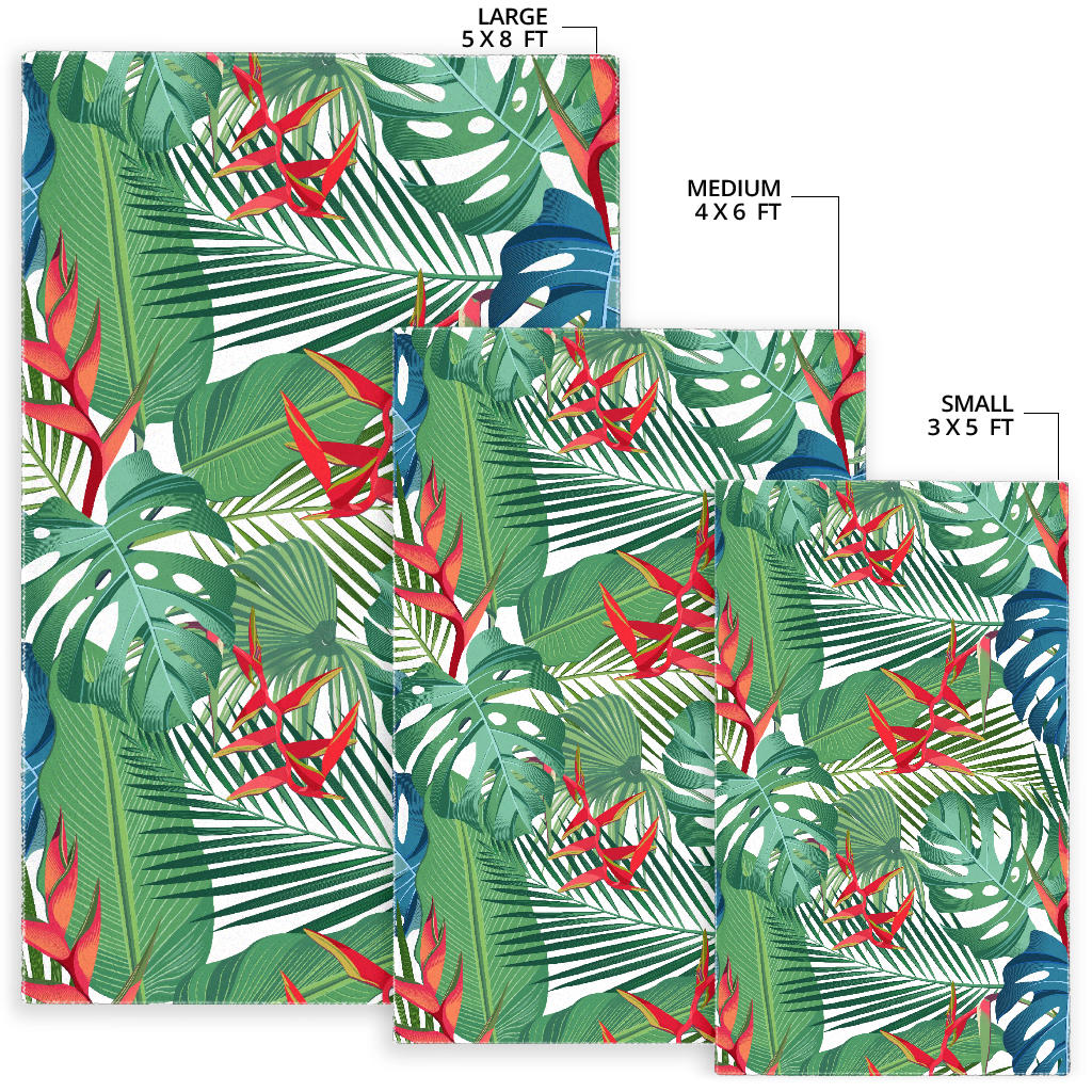 heliconia palm and monstera leaves pattern Area Rug is a uniqued design and limited item. It made to order, hand printed, and sewn with love in our factory.