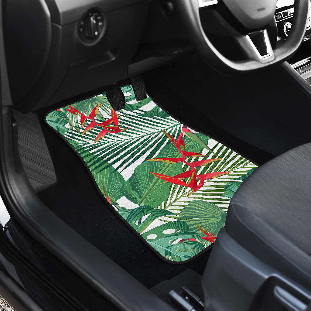 Heliconia Palm And Monstera Leaves Pattern Front And Back Car Mats