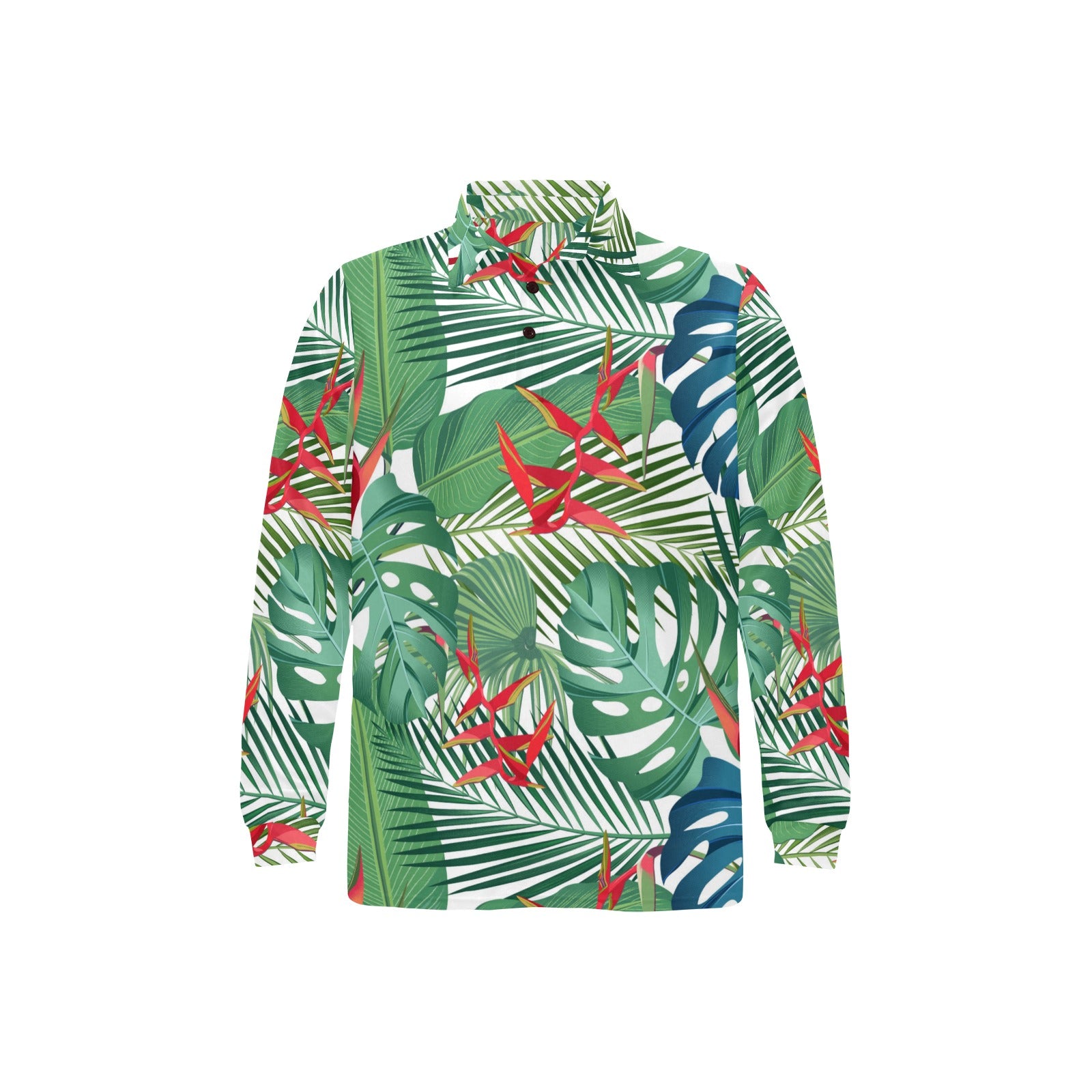 heliconia palm and monstera leaves pattern Men's Long Sleeve Polo Shirt