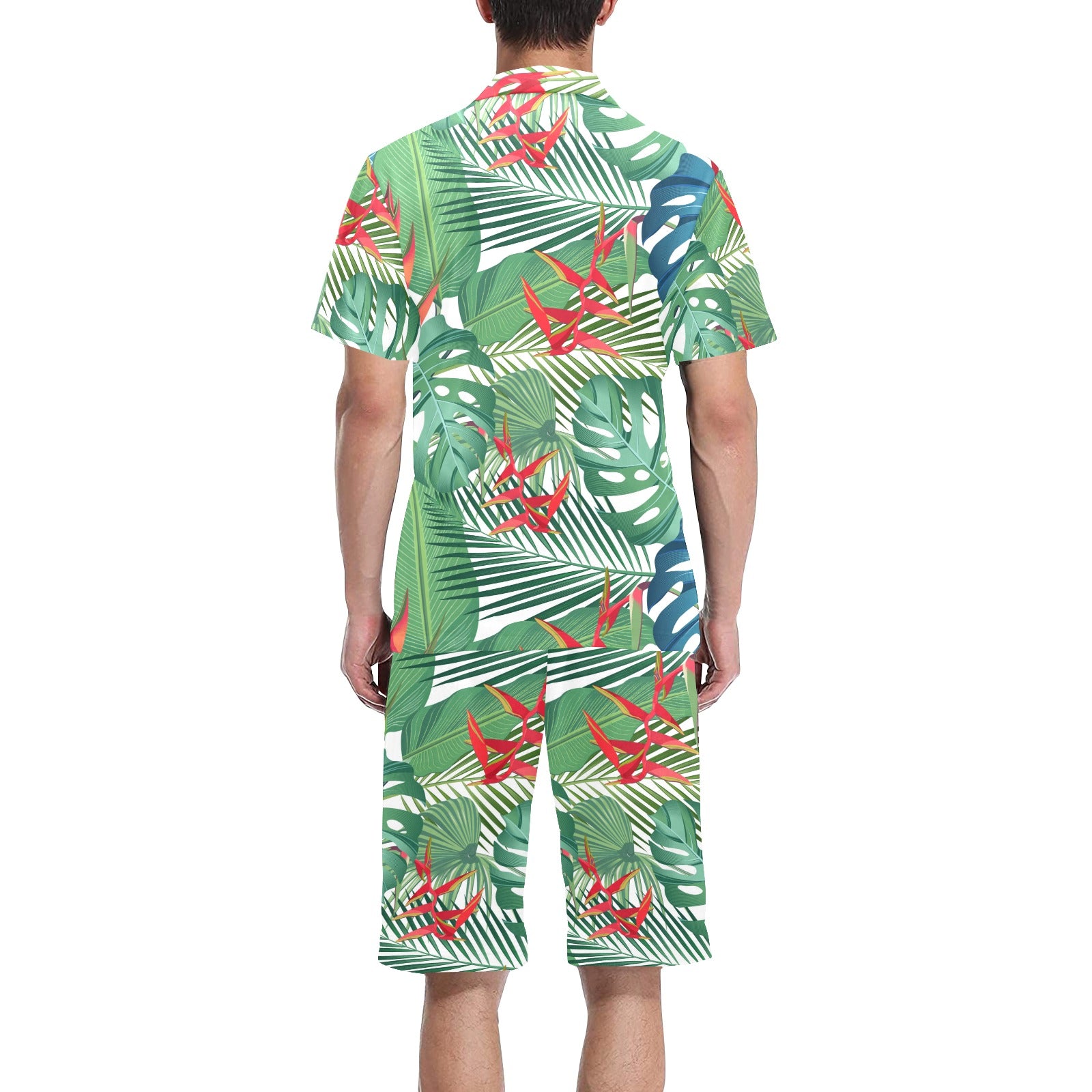 heliconia palm and monstera leaves pattern Men's V-Neck Short Pajama Set