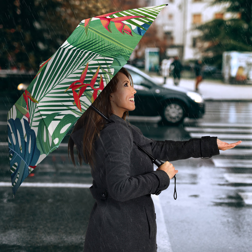 Heliconia Palm And Monstera Leaves Pattern Umbrella