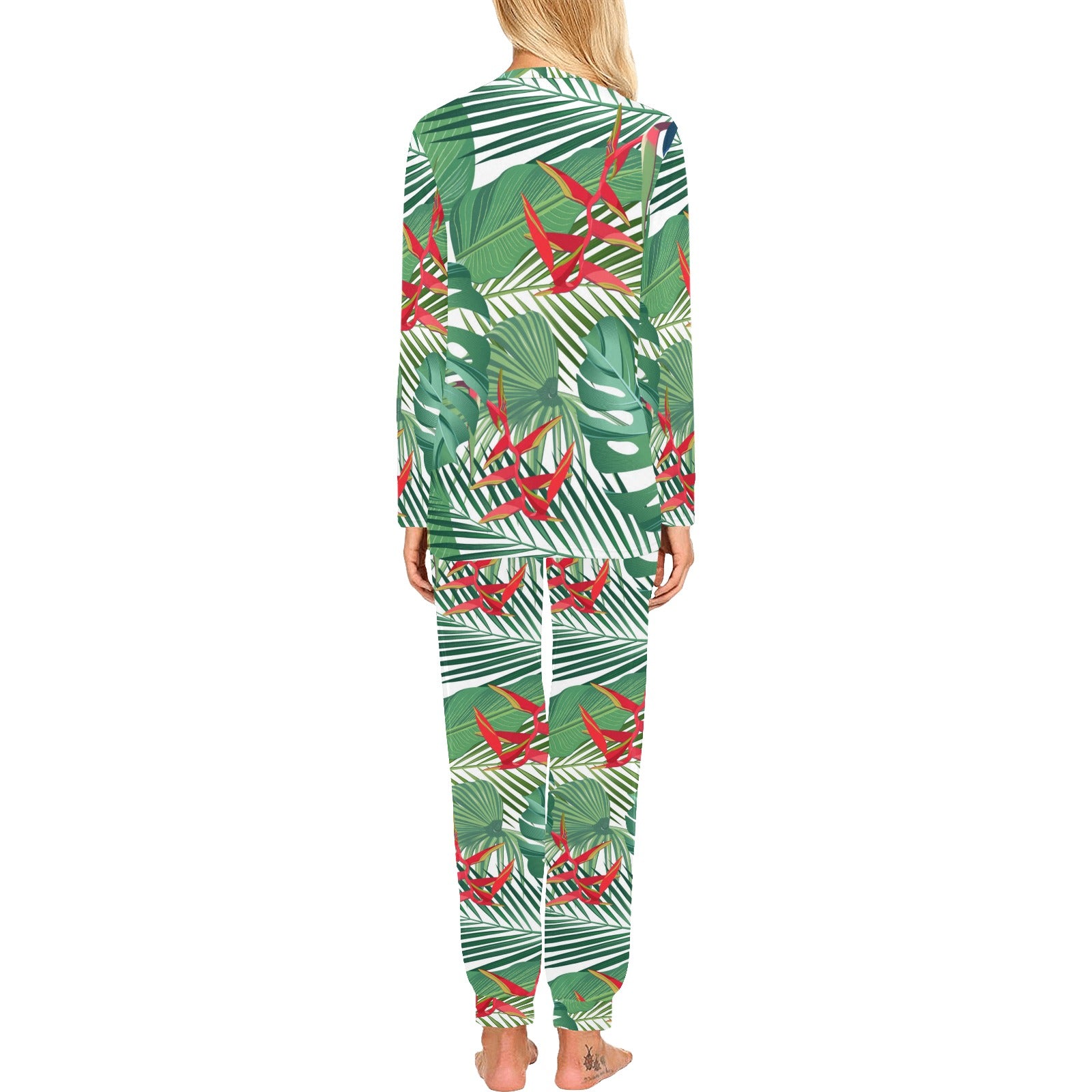 heliconia palm and monstera leaves pattern Women's All Over Print Pajama Set
