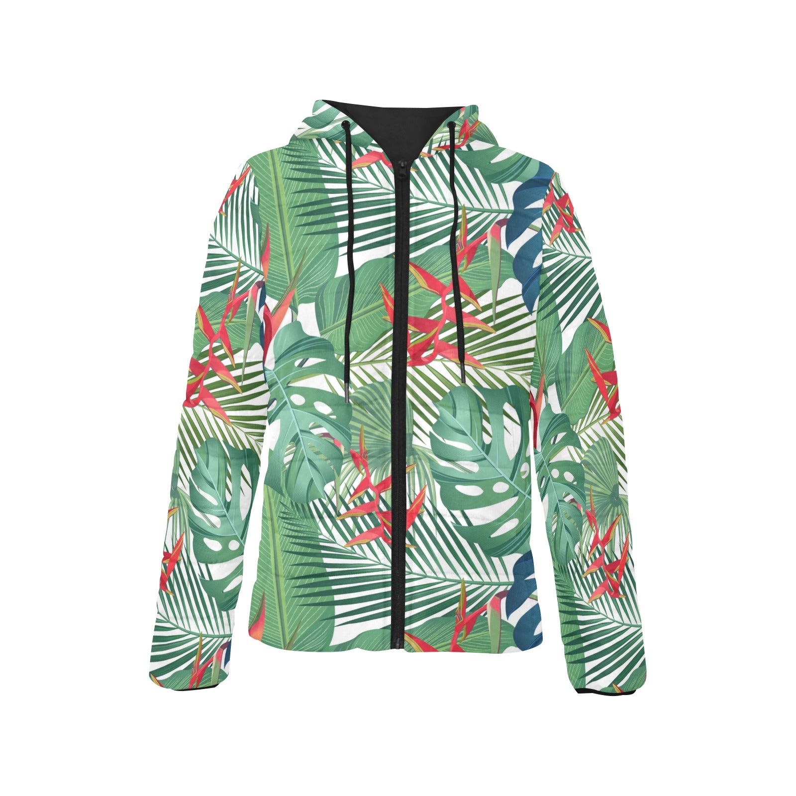 heliconia palm and monstera leaves pattern Women's Padded Hooded Jacket