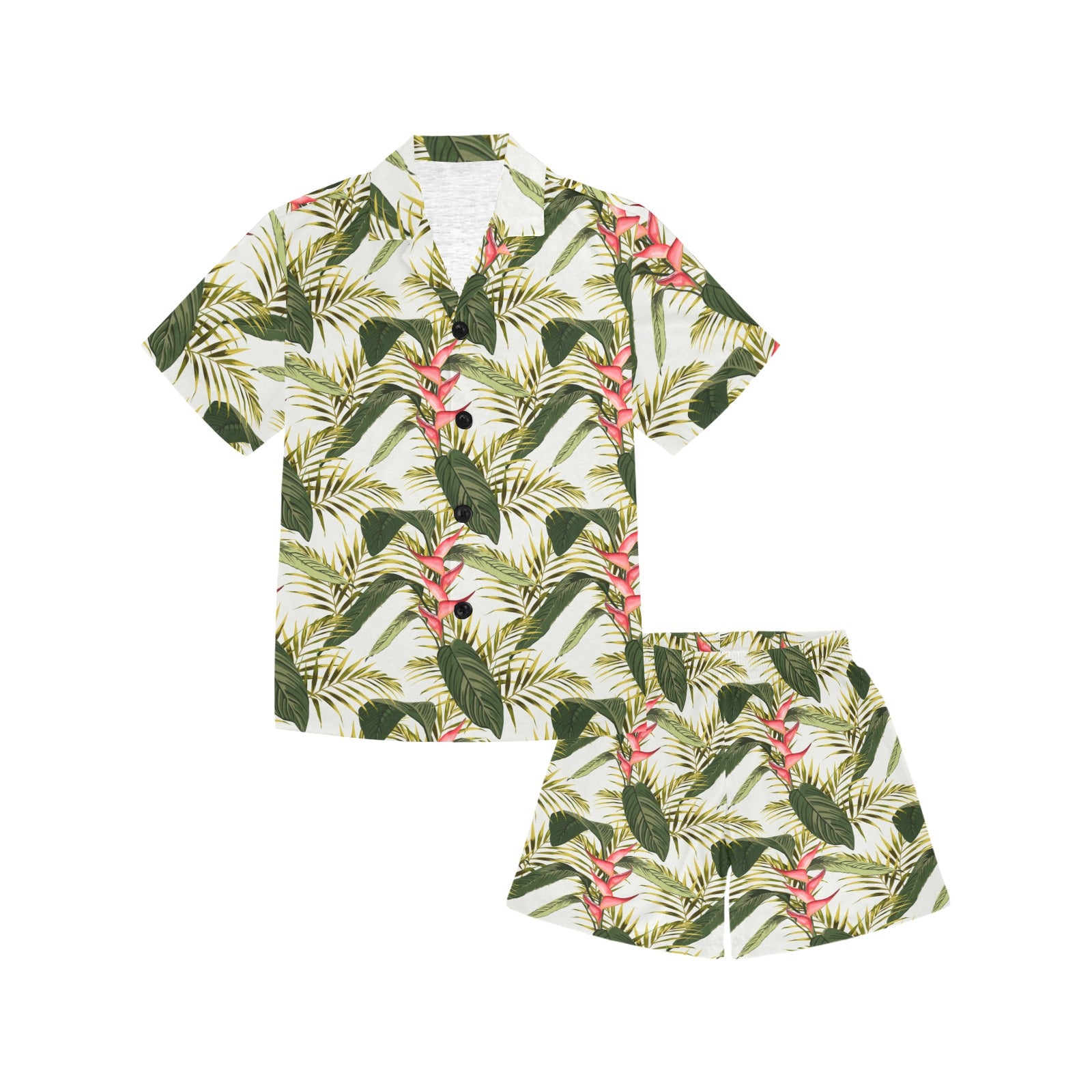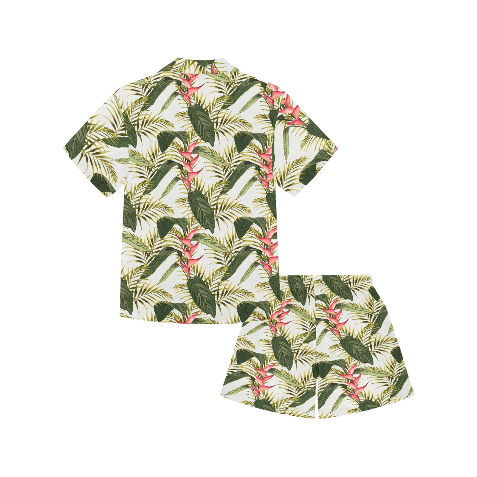 heliconia pattern Kids' Boys' Girls' V-Neck Short Pajama Set