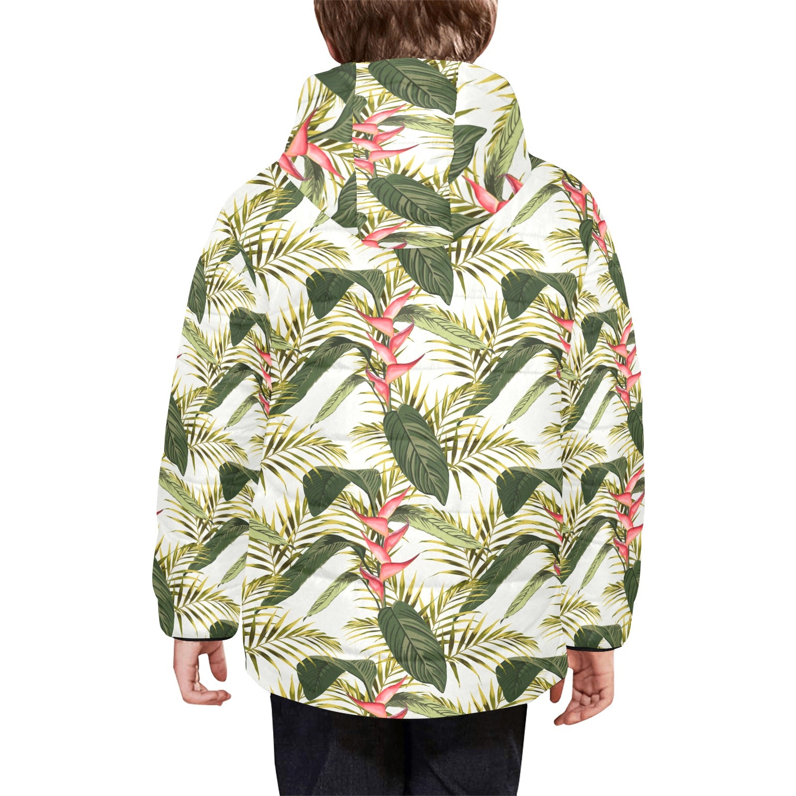 heliconia pattern Kids' Boys' Girls' Padded Hooded Jacket
