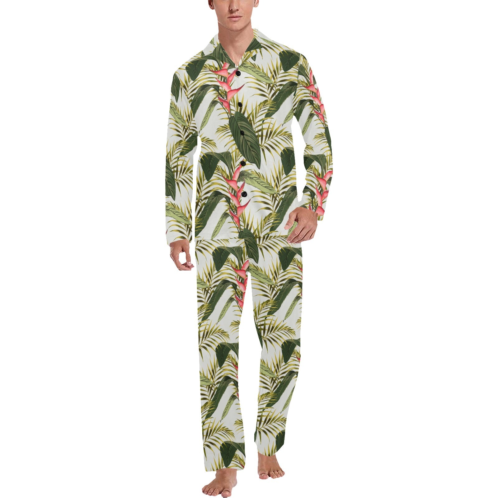 heliconia pattern Men's Long Pajama Set