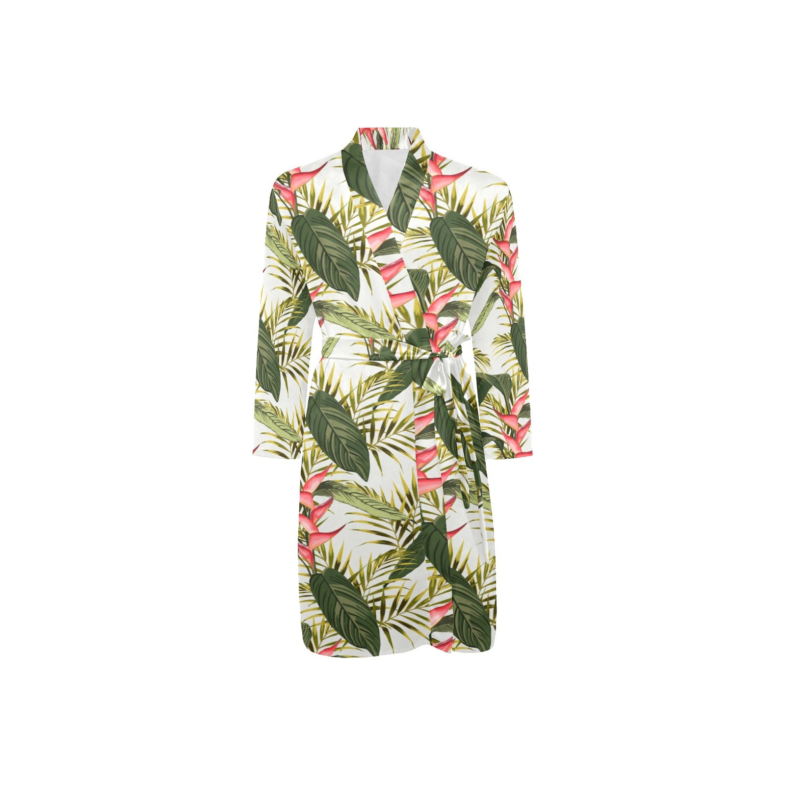 heliconia pattern Men's Long Sleeve Belted Night Robe