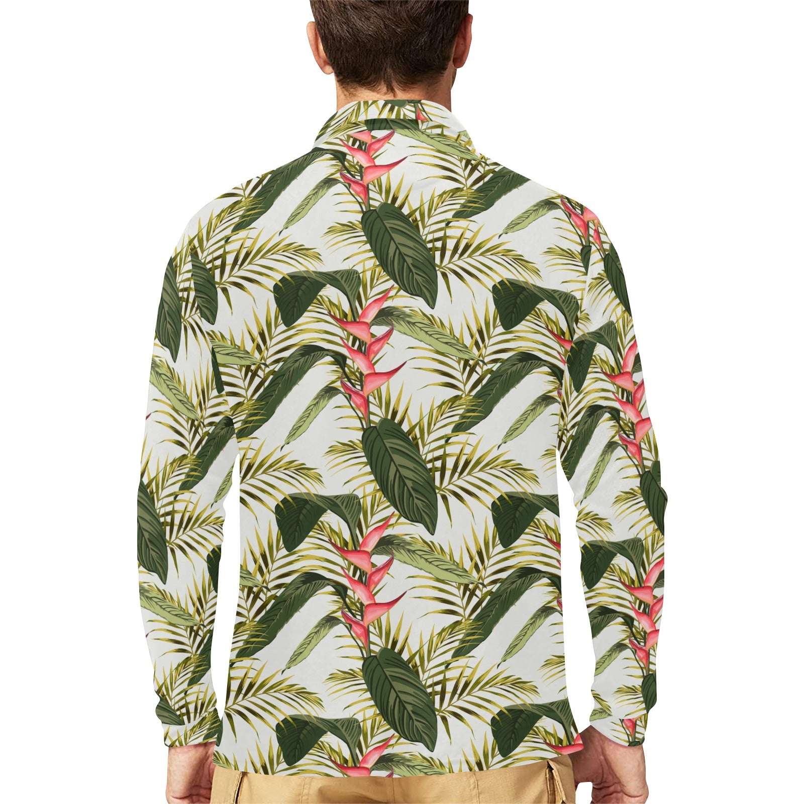 heliconia pattern Men's Long Sleeve Polo Shirt