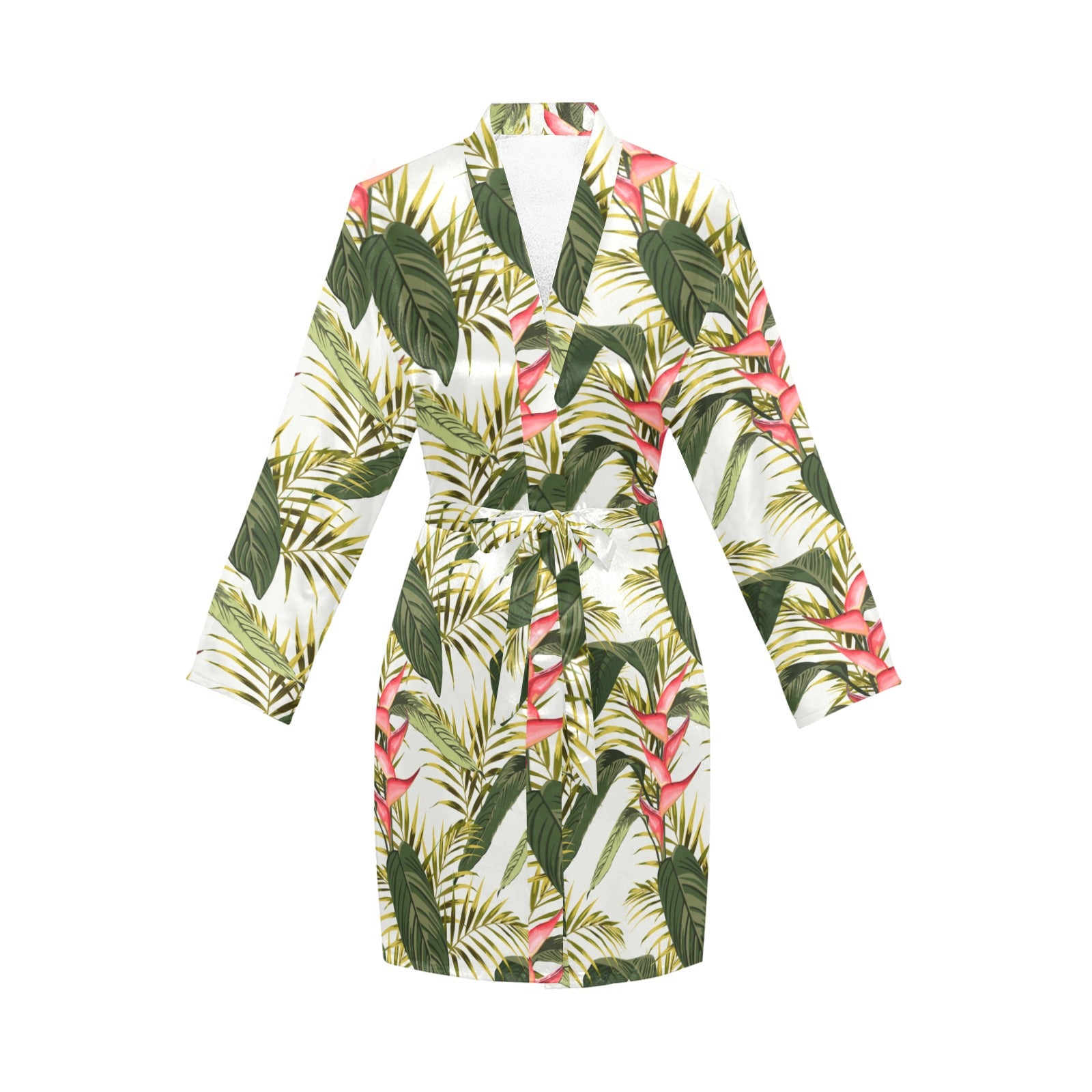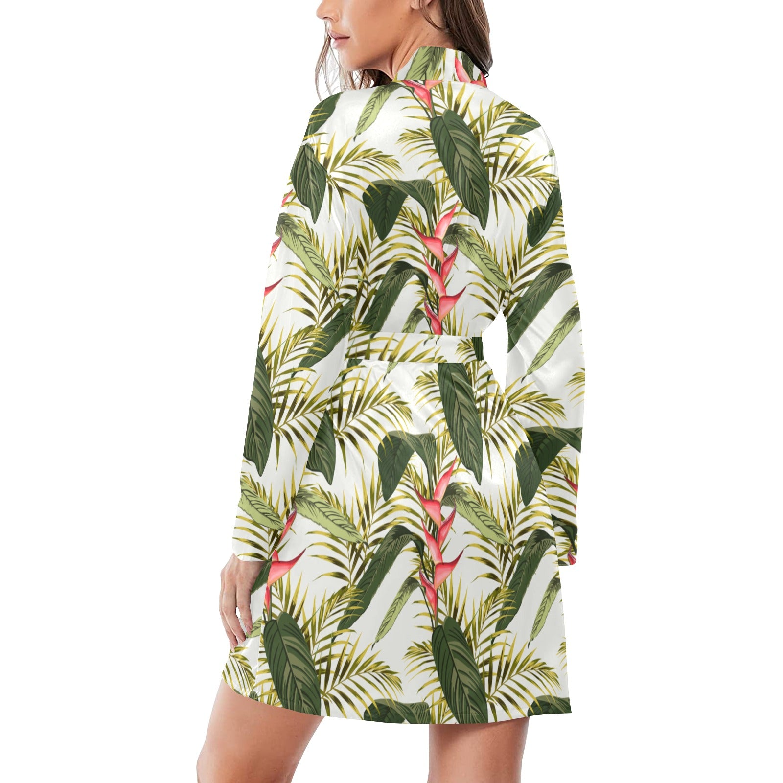 heliconia pattern Women's Long Sleeve Belted Night Robe