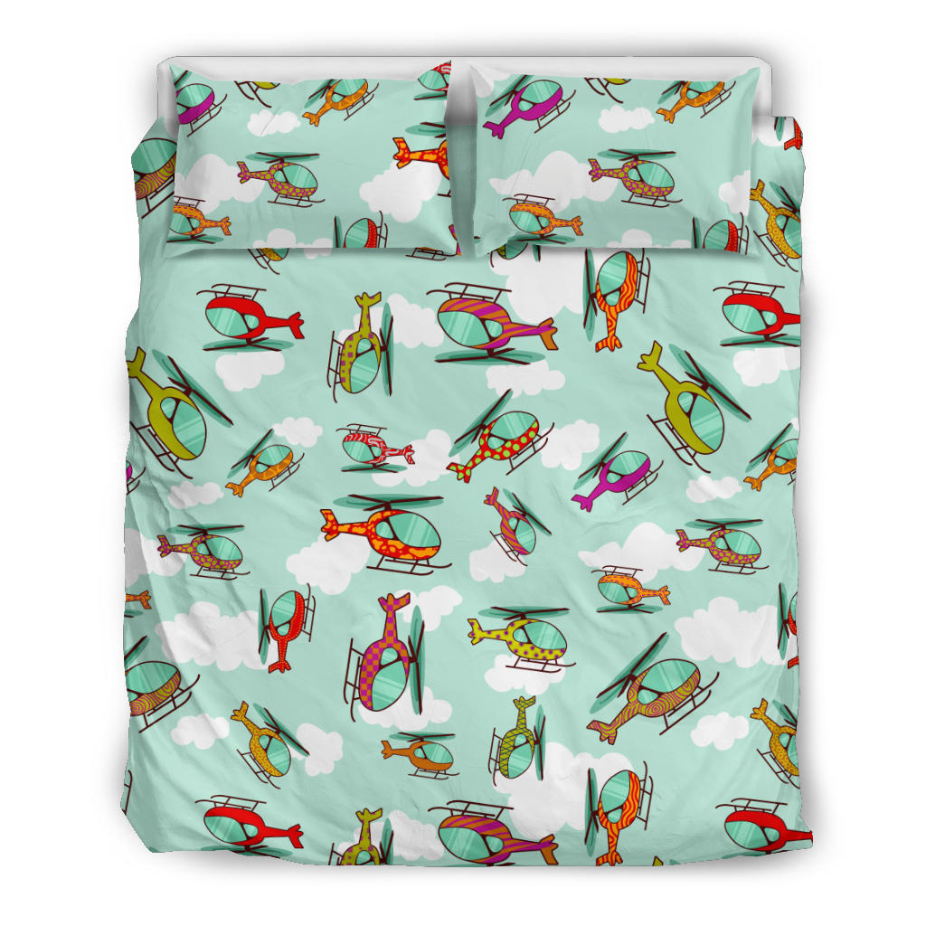 Helicopter design pattern Bedding Set is a uniqued design and limited item. It made to order, hand printed, and sewn with love in our factory.