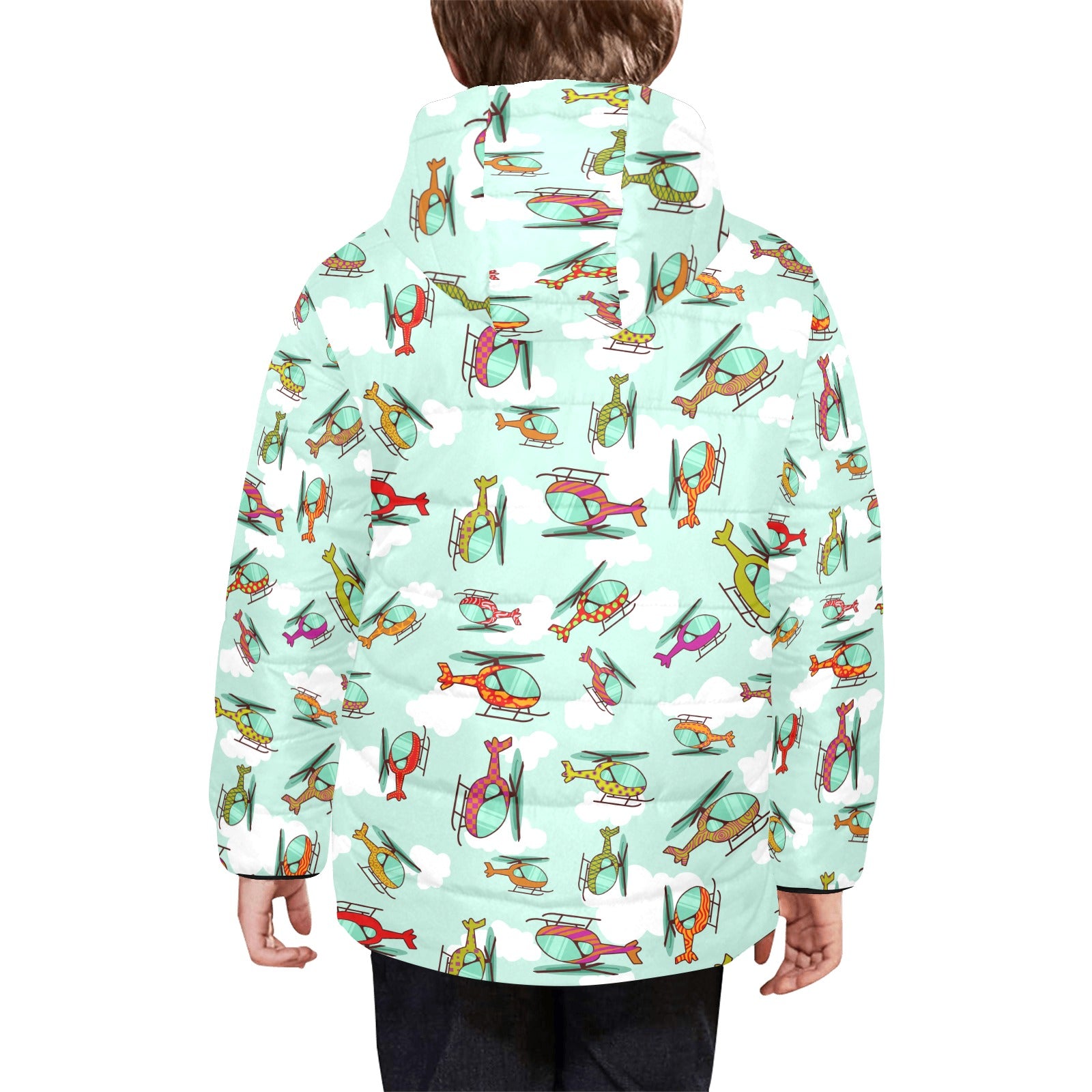 Helicopter design pattern Kids' Boys' Girls' Padded Hooded Jacket