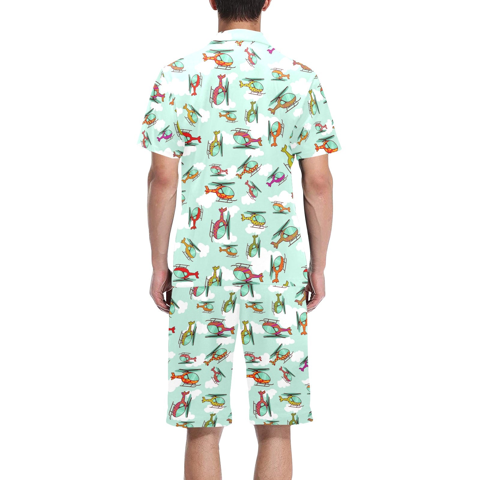 Helicopter design pattern Men's V-Neck Short Pajama Set