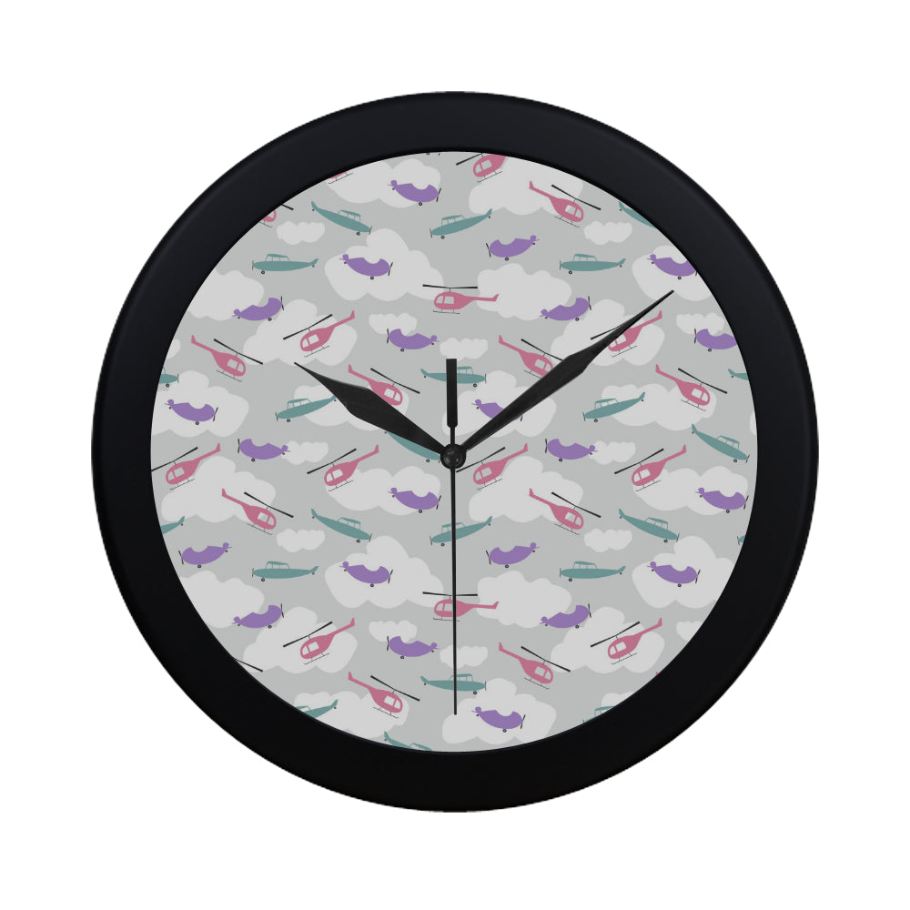 Helicopter plane pattern Elegant Black Wall Clock is a uniqued design and limited item. It made to order, hand printed, and sewn with love in our factory.
