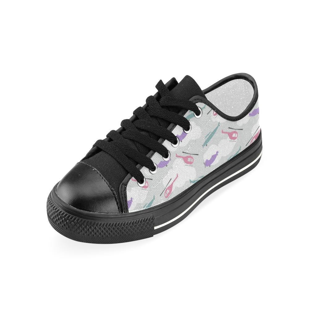 Helicopter plane pattern Kids' Boys' Girls' Low Top Canvas Shoes Black