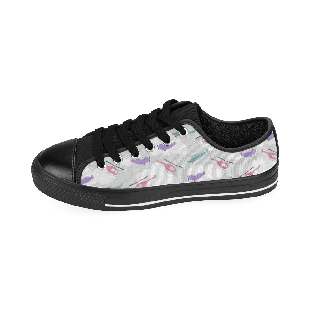 Helicopter plane pattern Men's Low Top Canvas Shoes Black