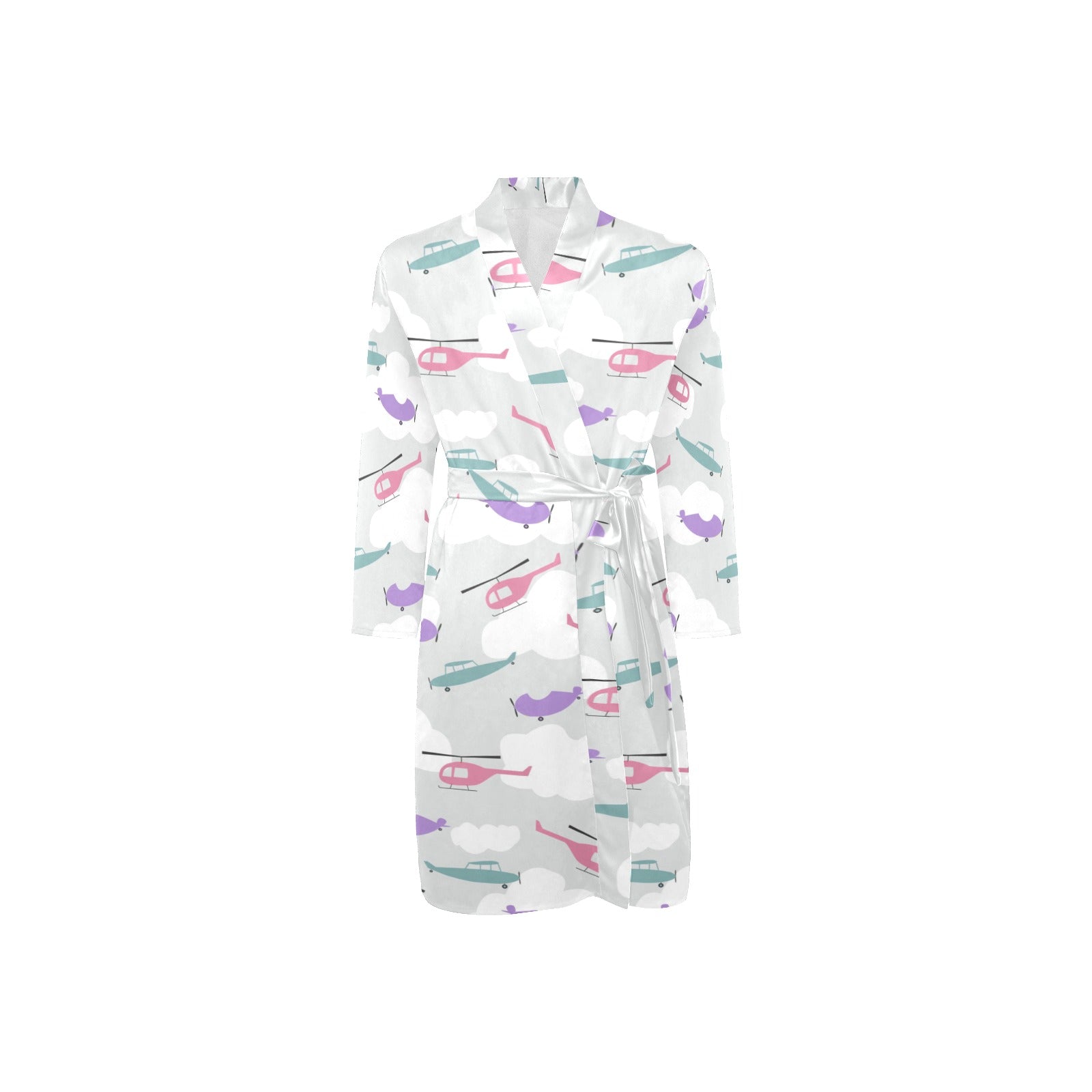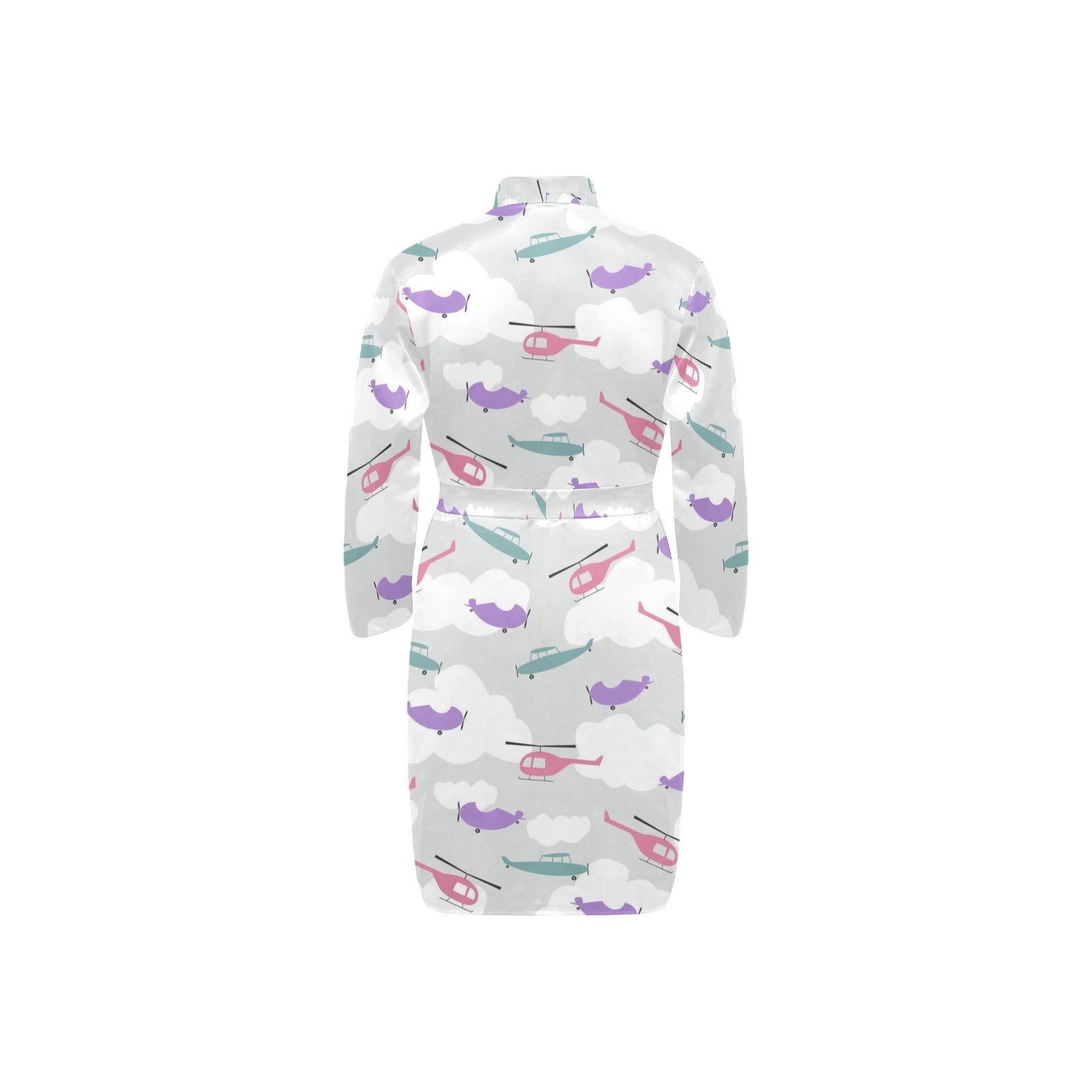 Helicopter plane pattern Men's Long Sleeve Belted Night Robe