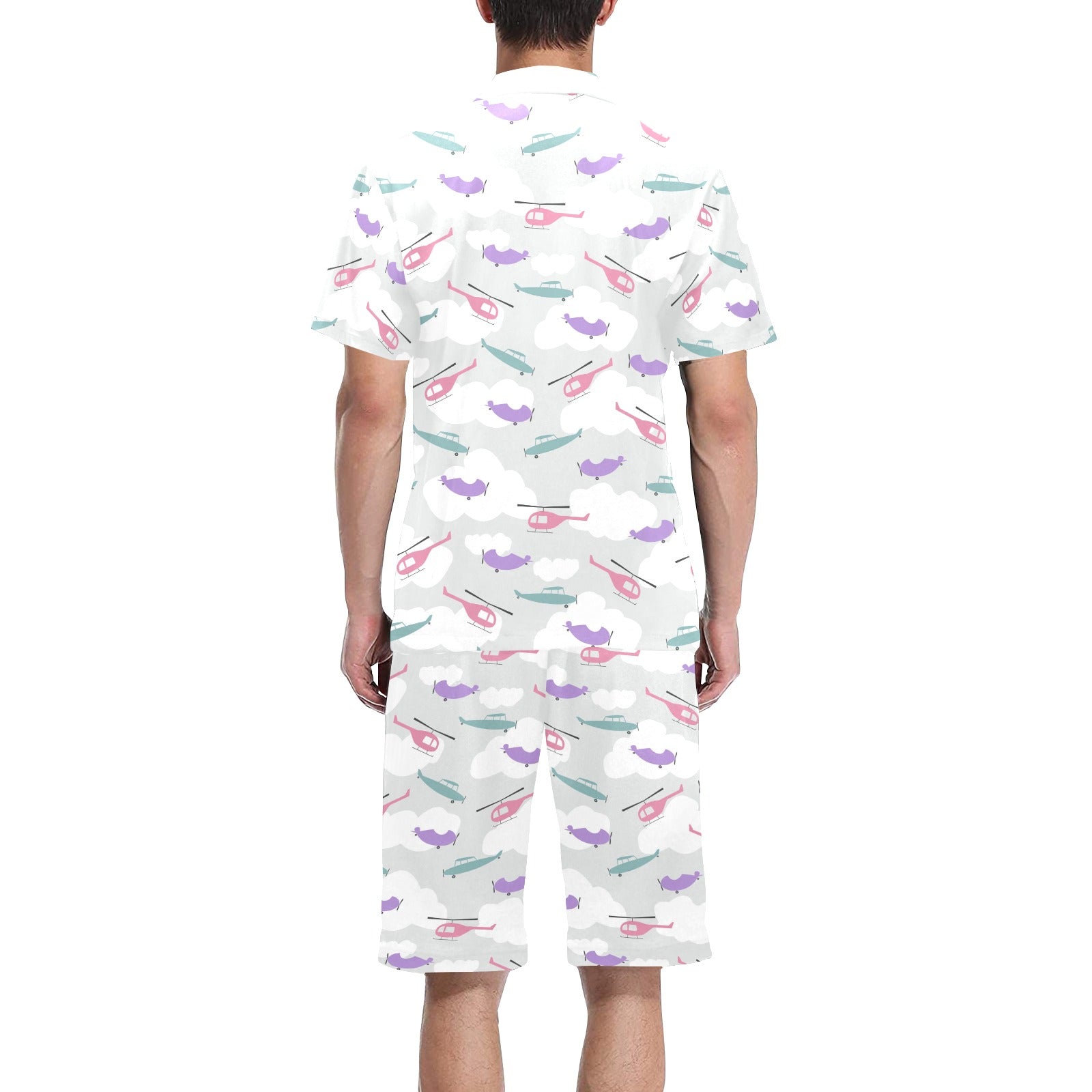 Helicopter plane pattern Men's V-Neck Short Pajama Set