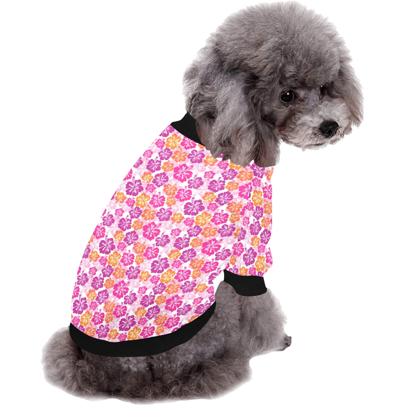 Hibiscus Pattern Print Design 01 All Over Print Pet Dog Round Neck Fuzzy Shirt
