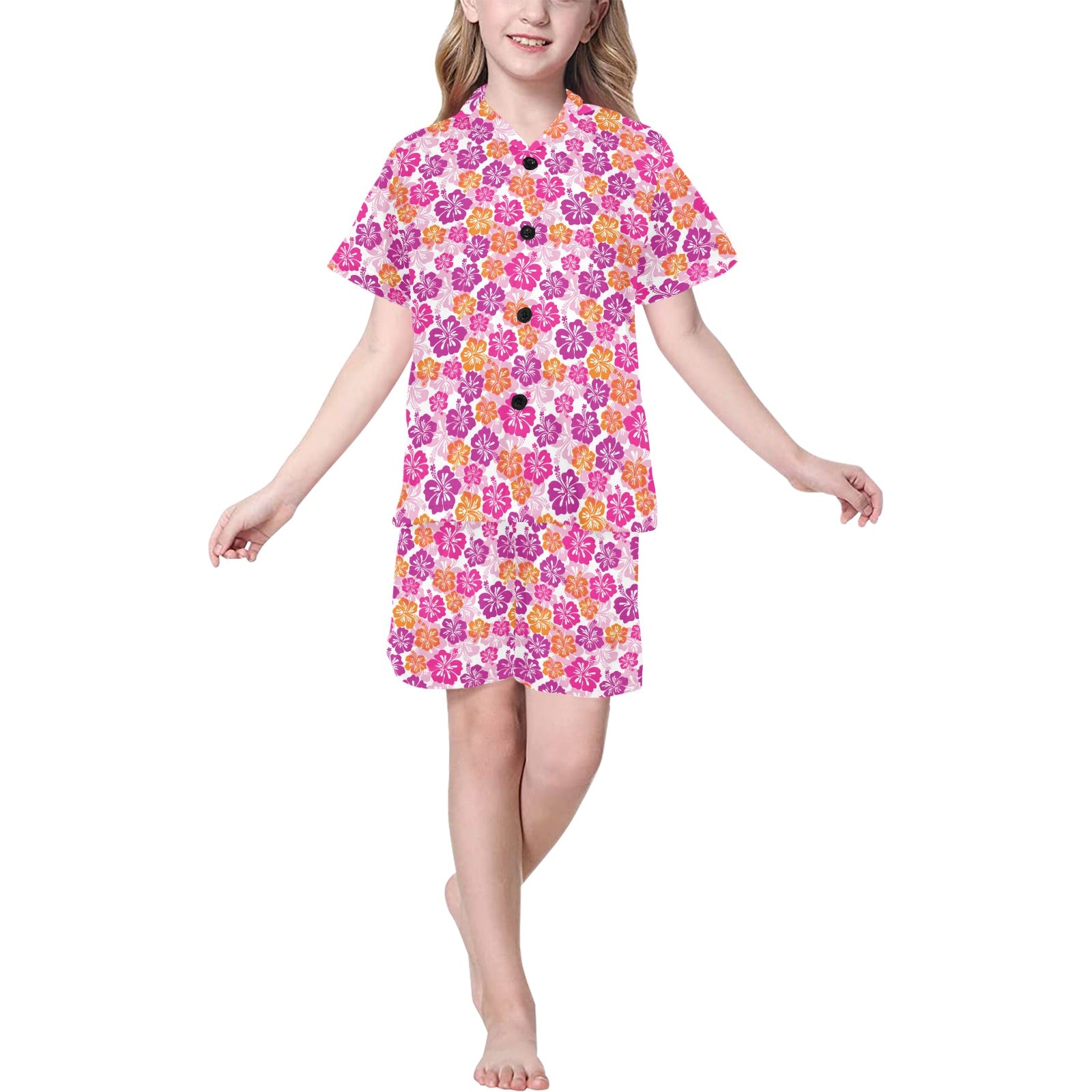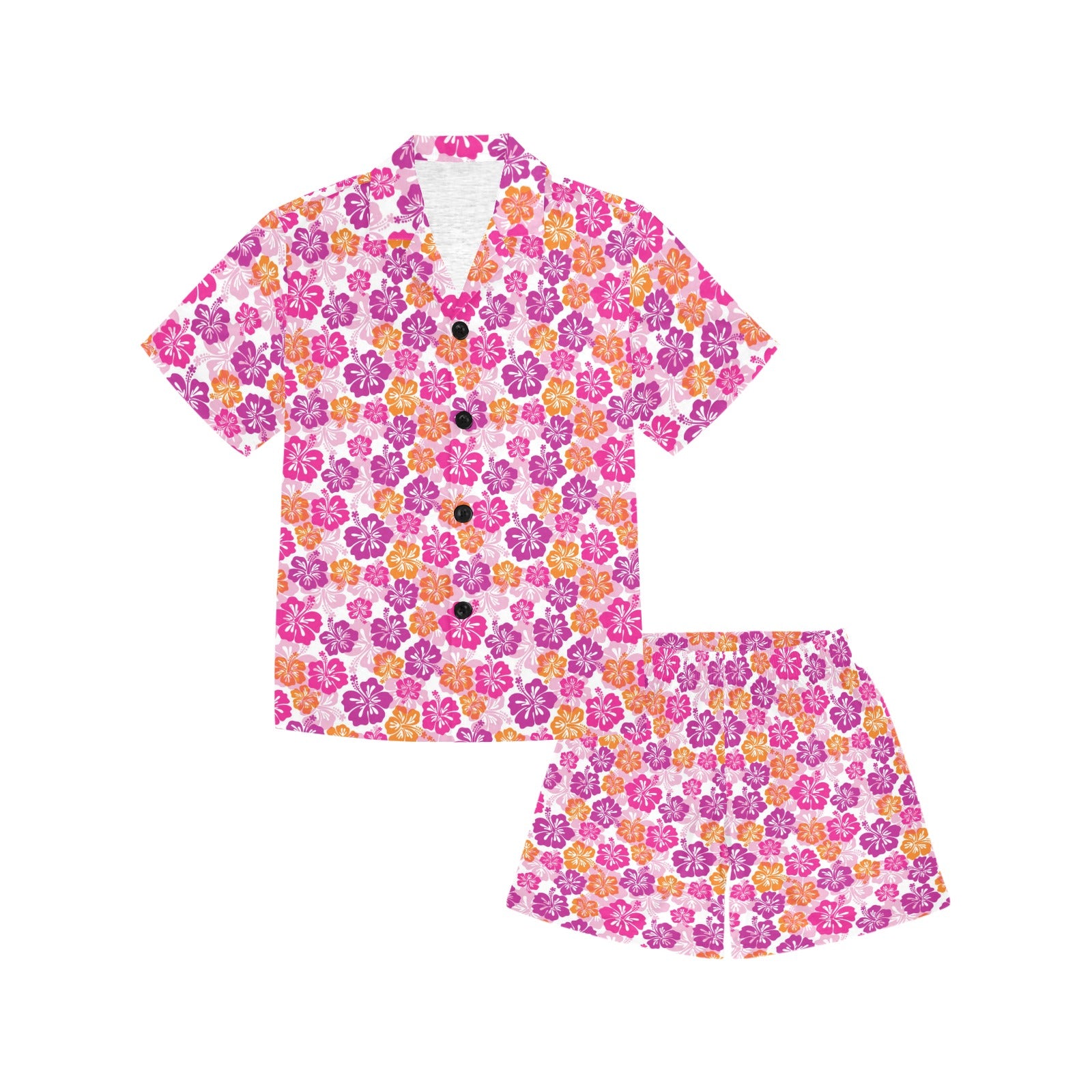 Hibiscus Pattern Print Design 01 Kids' Boys' Girls' V-Neck Short Pajama Set