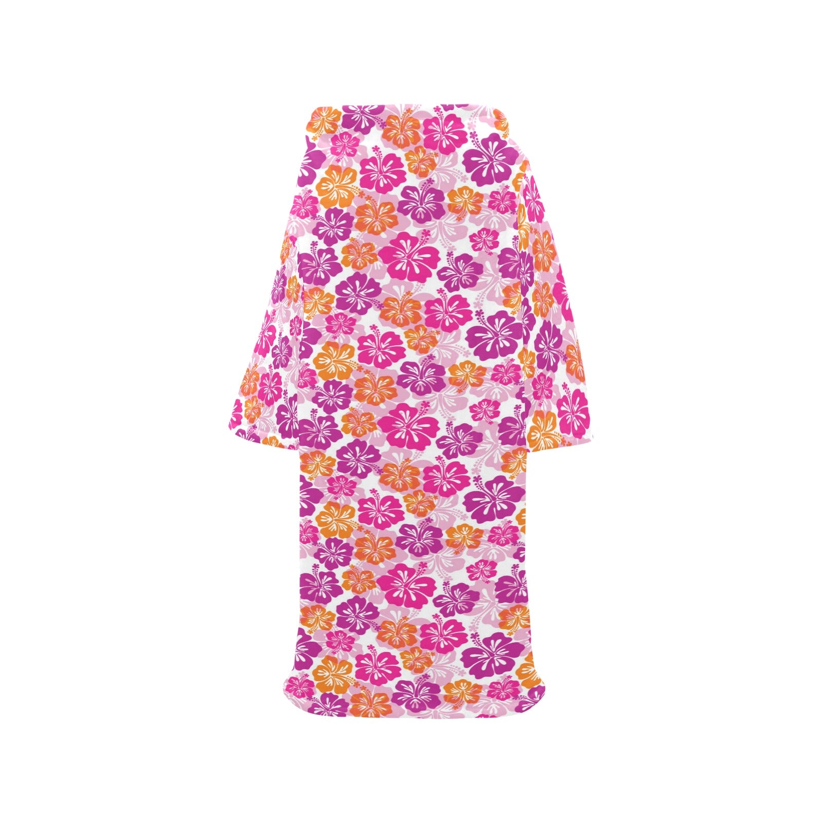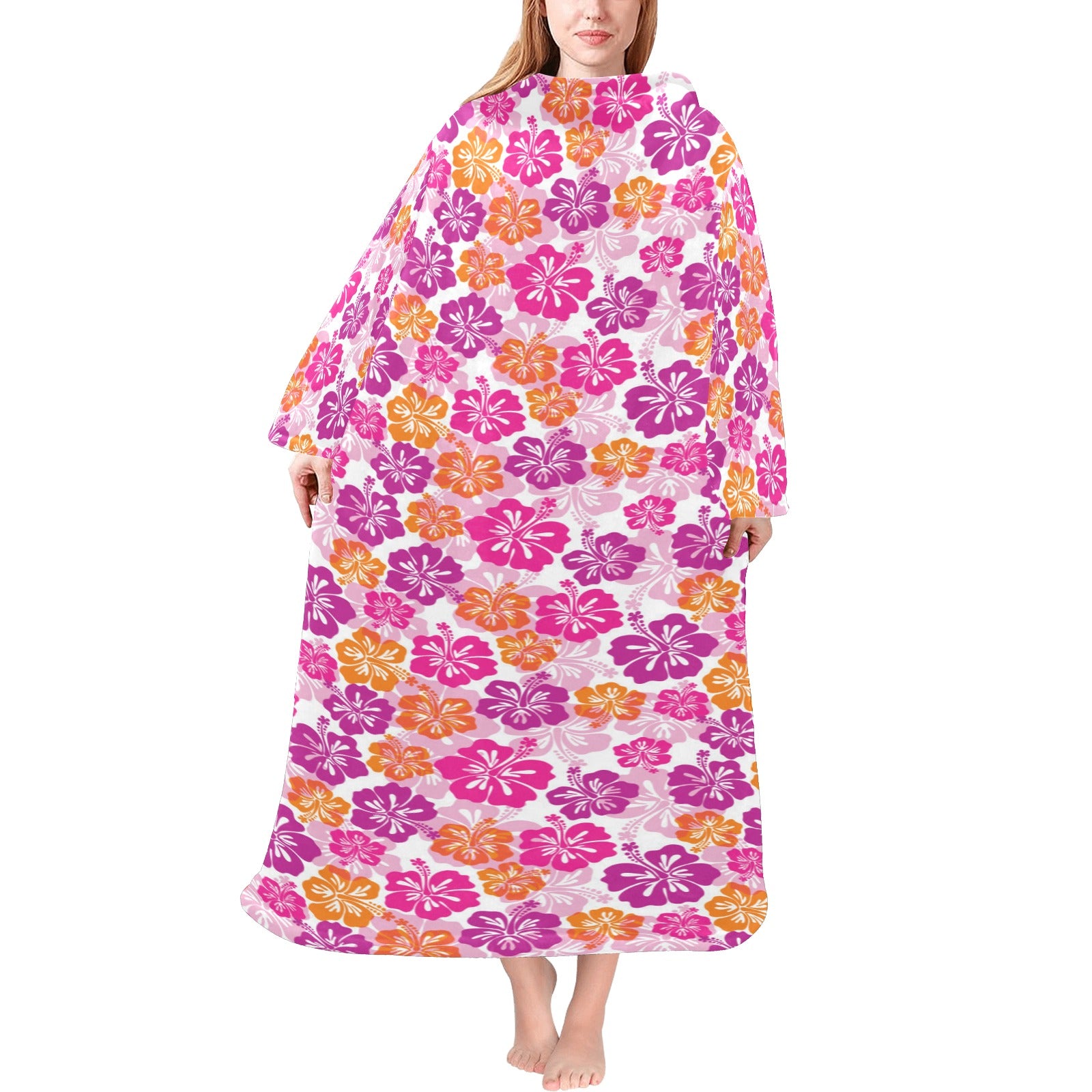 Hibiscus Pattern Print Design 01 Blanket Robe with Sleeves