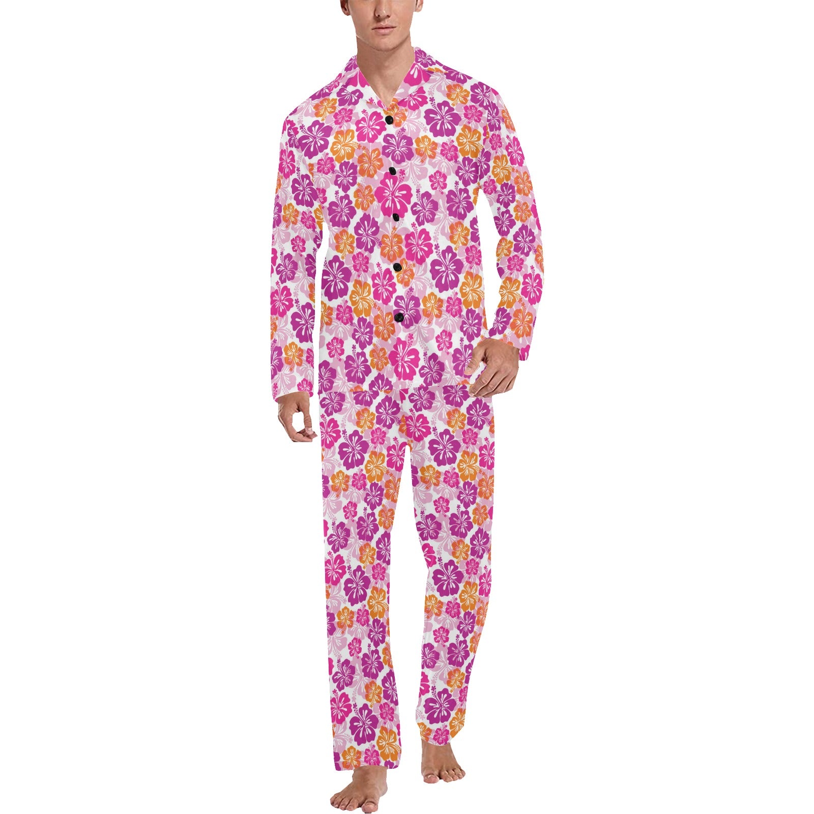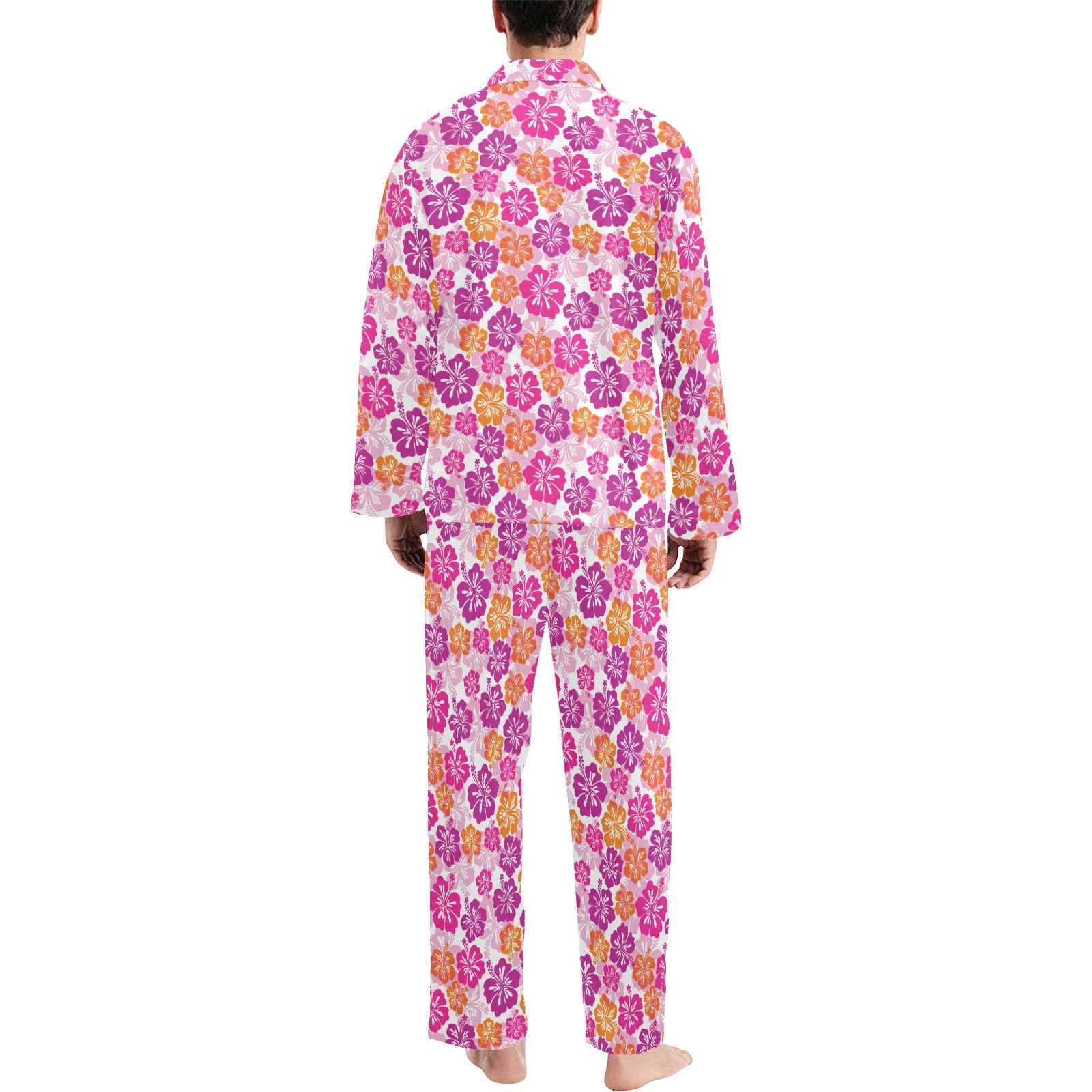 Hibiscus Pattern Print Design 01 Men's Long Pajama Set