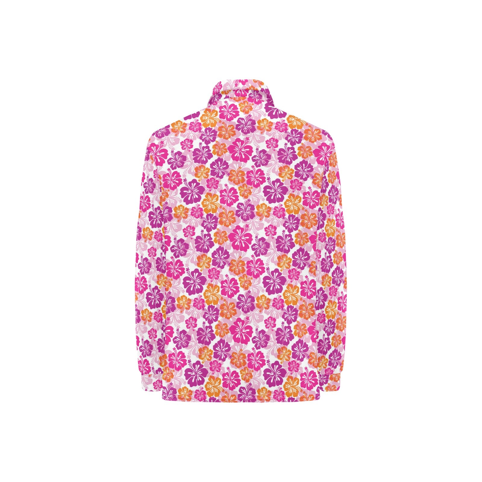 Hibiscus Pattern Print Design 01 Women's Long Sleeve Polo Shirt