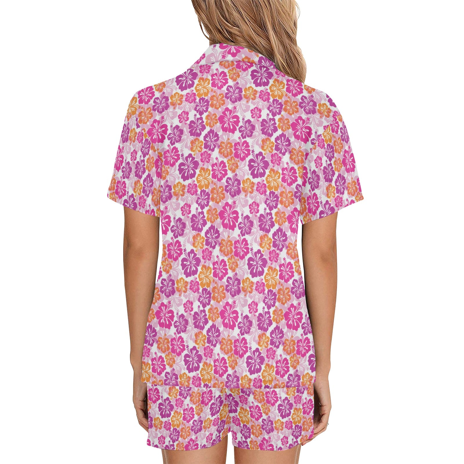 Hibiscus Pattern Print Design 01 Women's V-Neck Short Pajama Set