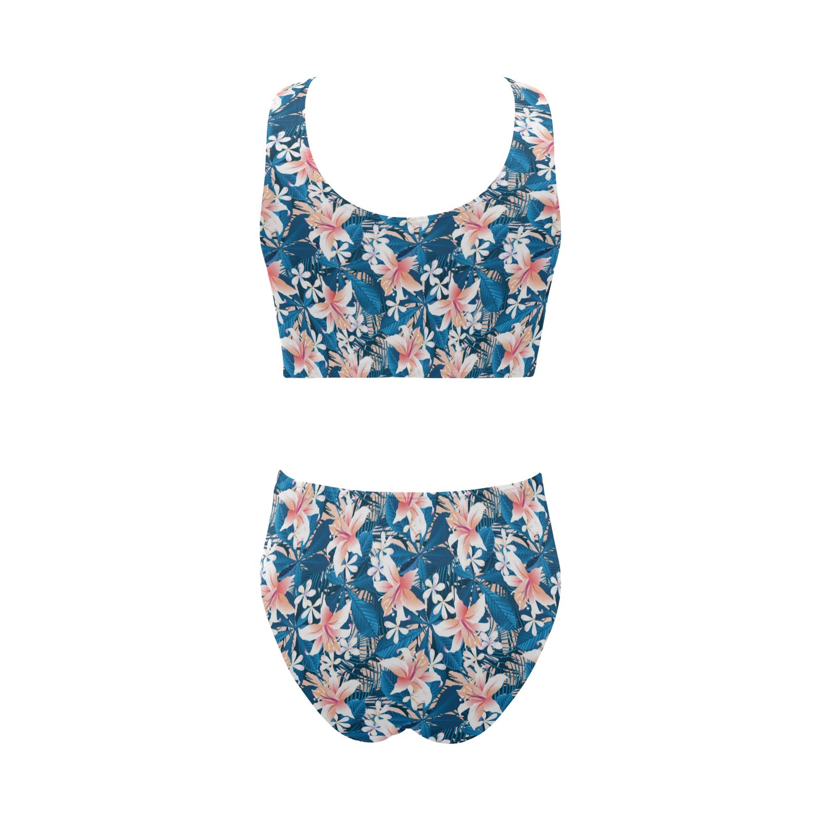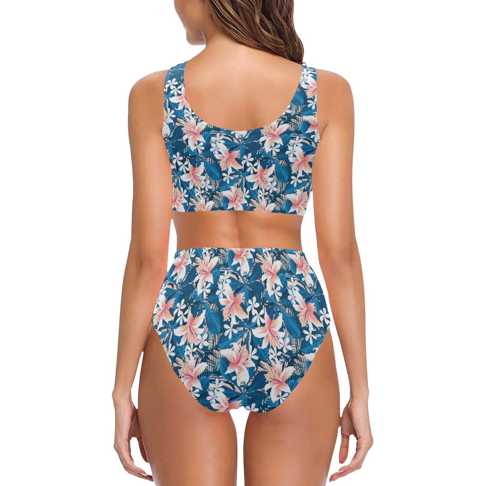Hibiscus Pattern Print Design 02 Chest Bowknot High Waisted Bikini Swimsuit