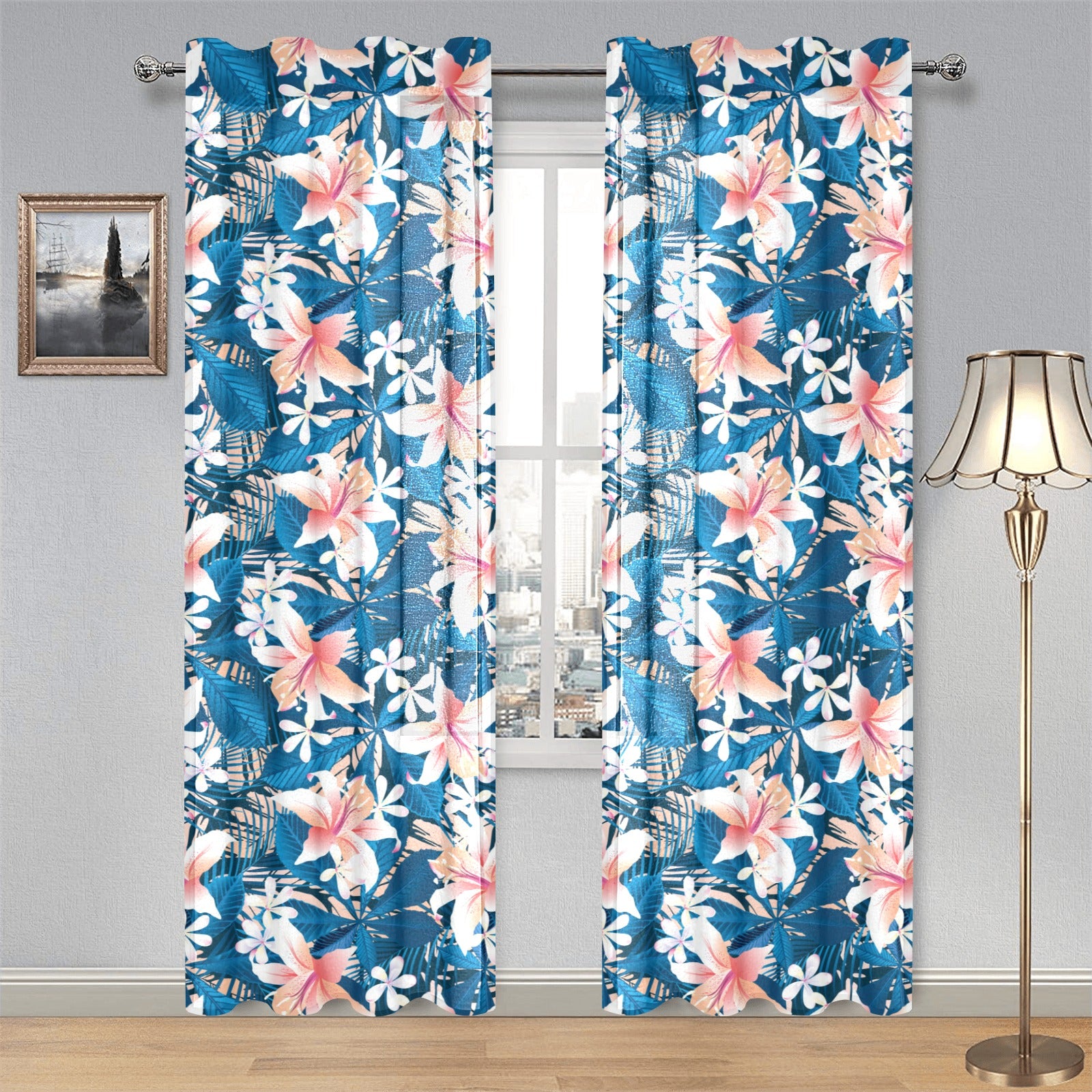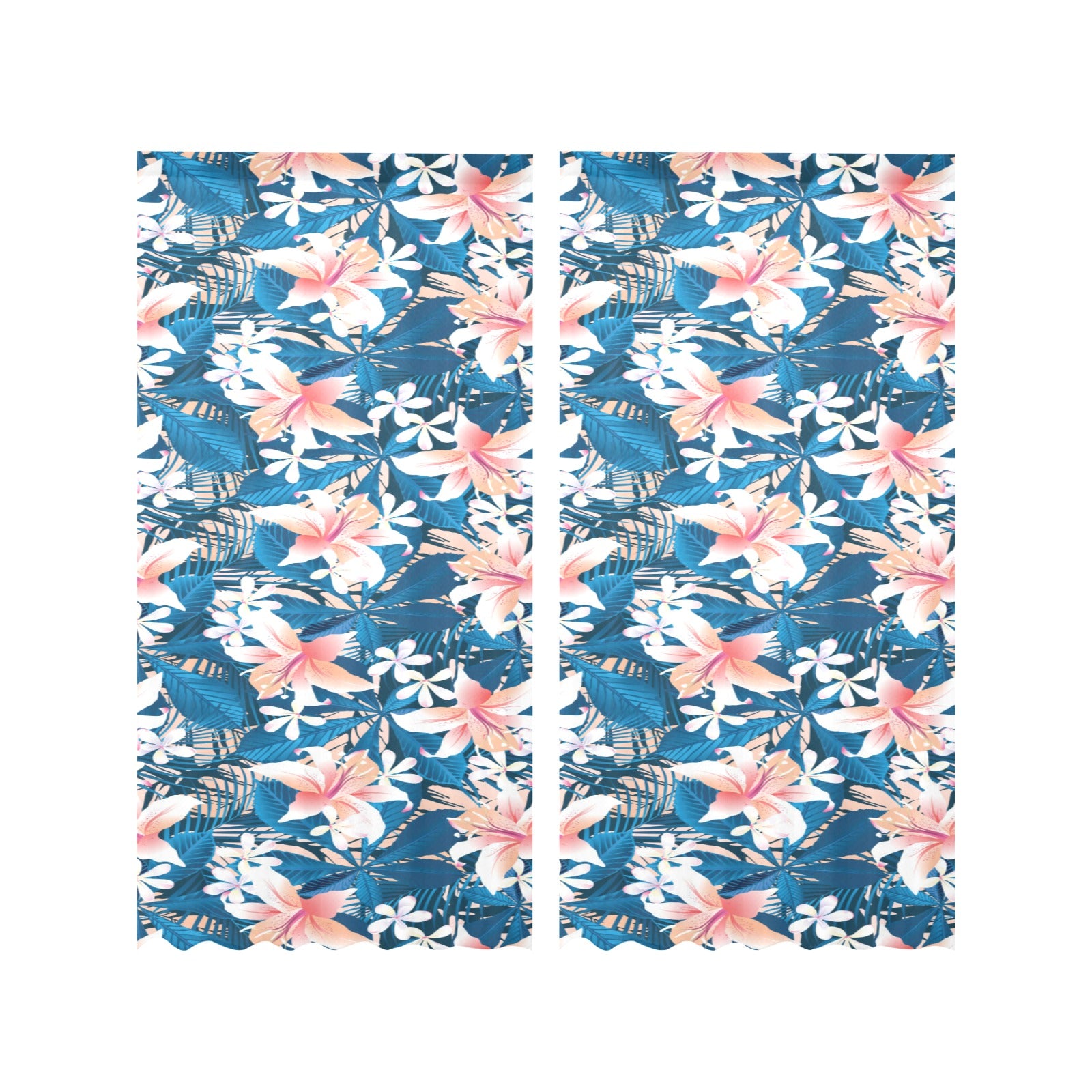 Hibiscus Pattern Print Design 02 Gauze Curtain