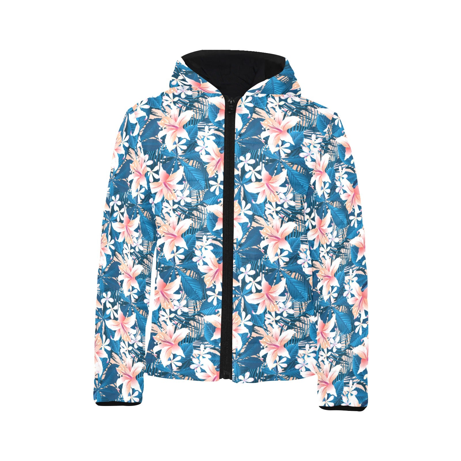 Hibiscus Pattern Print Design 02 Kids' Boys' Girls' Padded Hooded Jacket